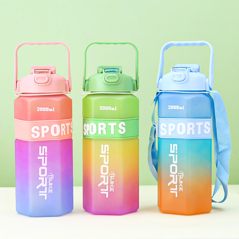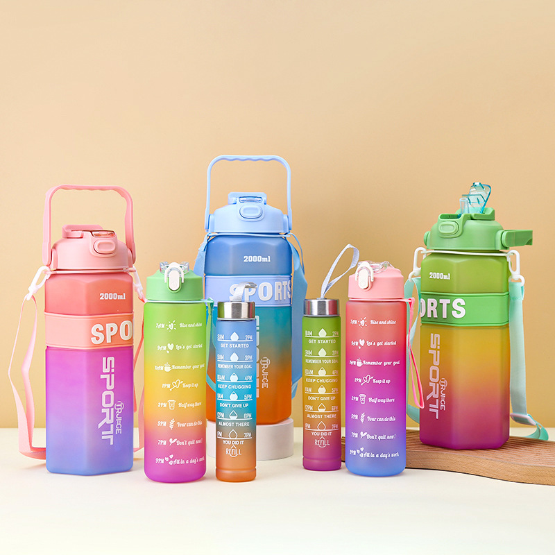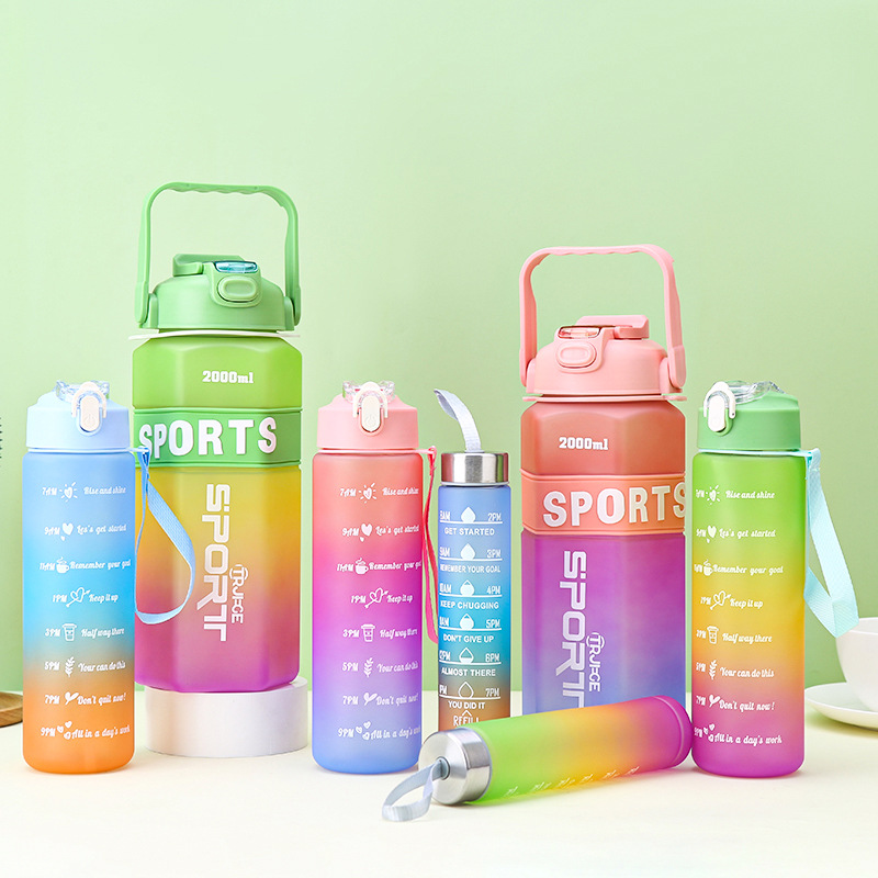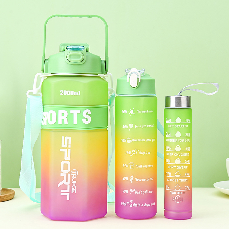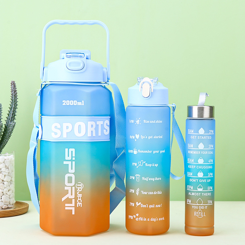 Gradient Color Large Capacity Three-Piece Plastic Cup Outdoor Portable Sports Water Bottle Belt Scale Large-Capacity Space Bottle 中文版