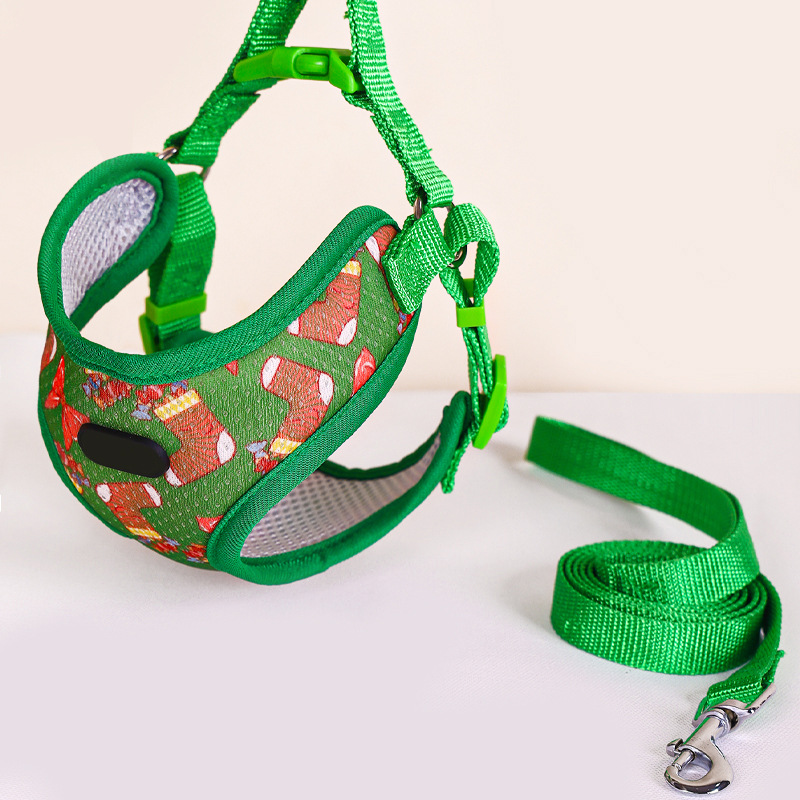 Cross-Border Christmas Dog Hand Holding Rope Explosion-Proof Pet Harness Vest-Style Christmas Series Outdoor Dog Leash