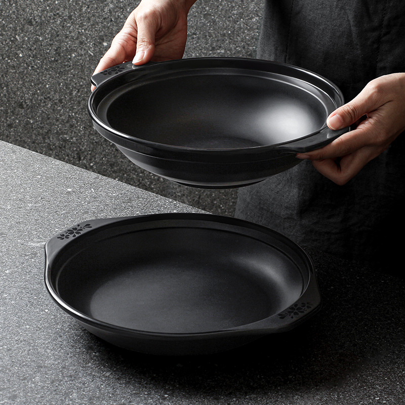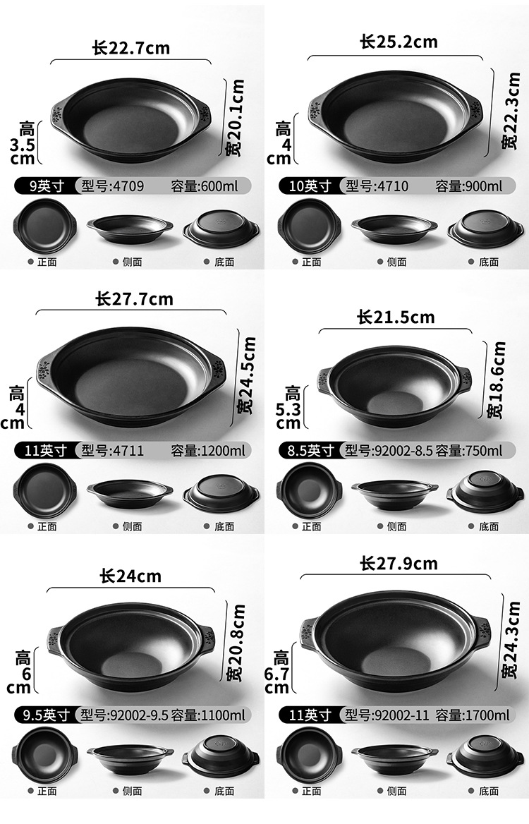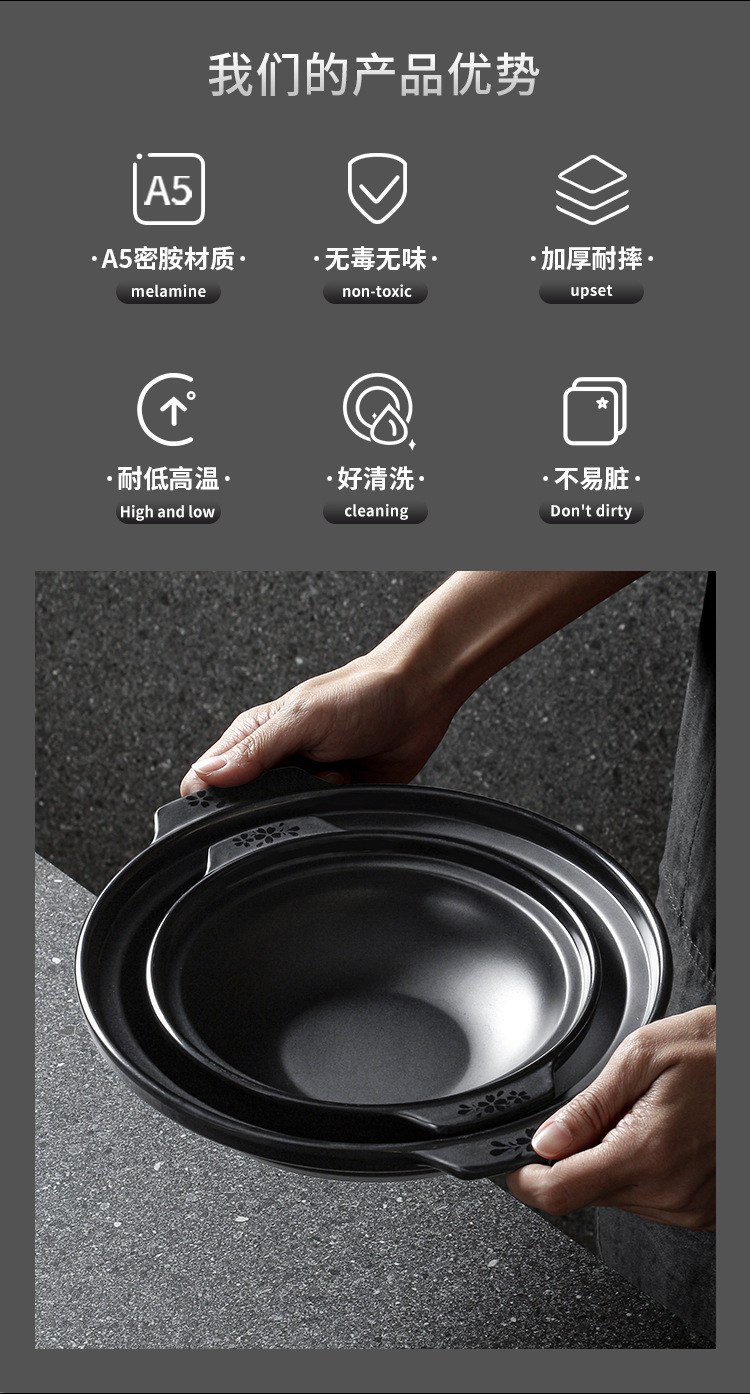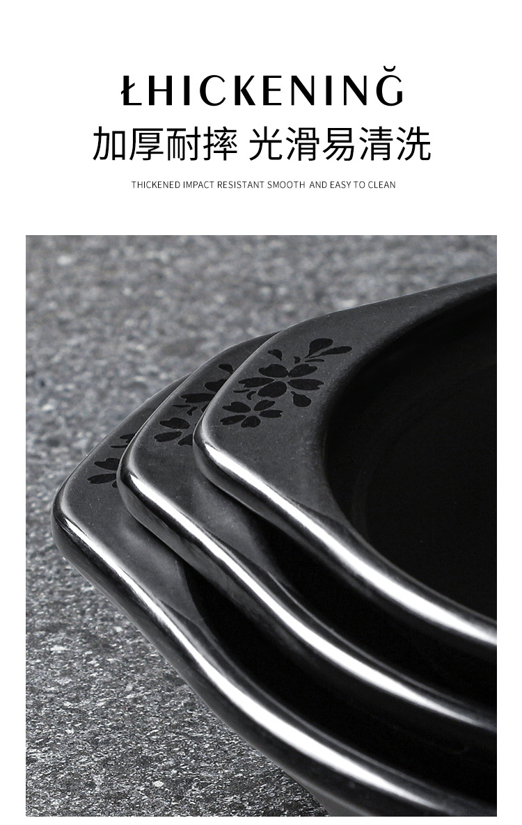 melamine cutlery plate hot pot restaurant black binaural plate commercial dish barbecue plate crayfish plate 中文版