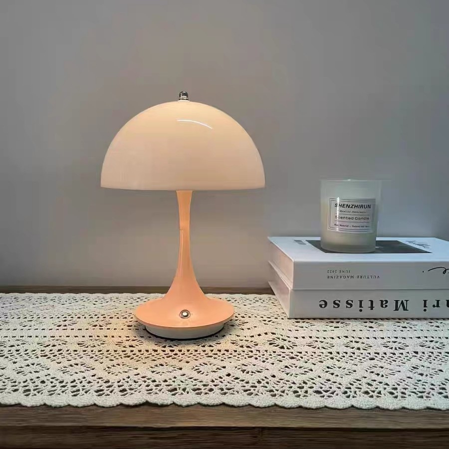 factory customized simple mushroom bedroom bedside lamp cross-border creative cream ambience light rechargeable led small night lamp