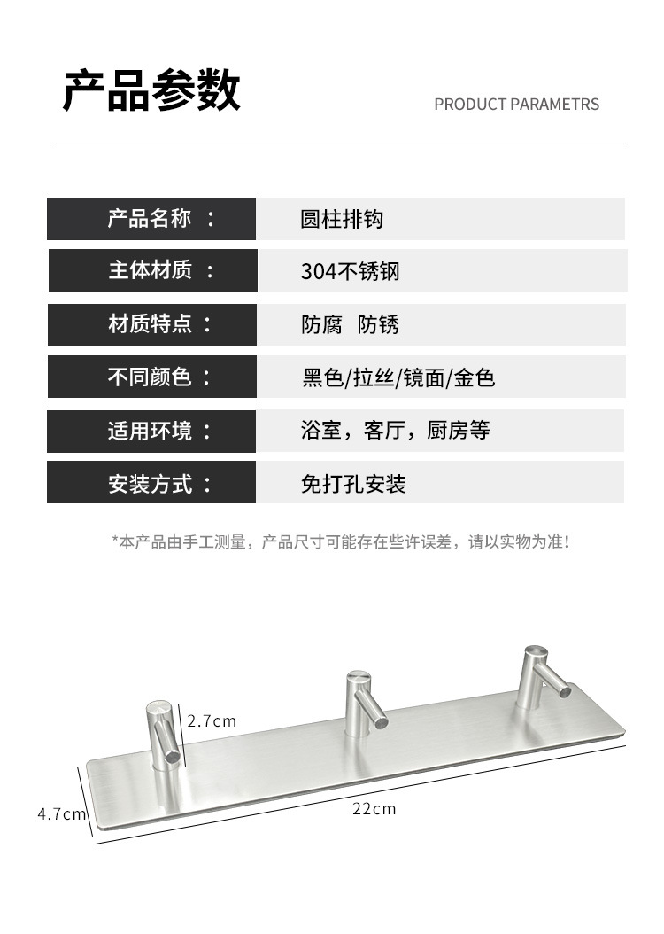 Cross-Border 304 Stainless Steel Hook Strong Sticky Hook Clothes Hook behind Doors Hardware Clothes Hook Punch-Free Metal Coat Hook