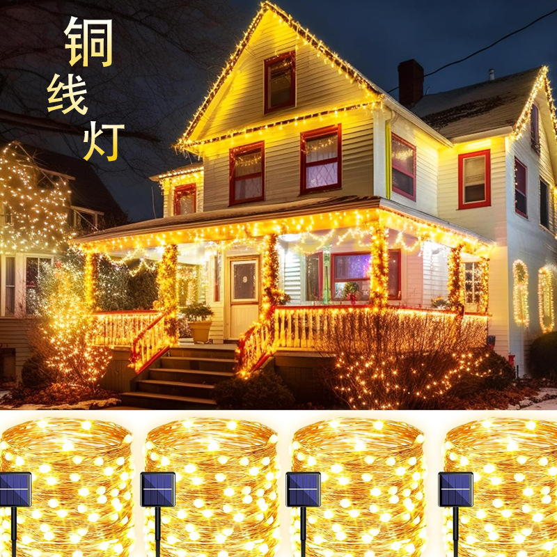 foreign trade exclusive for super bright led lighting chain solar copper wire magical light outdoor stall decoration 8 function ambience light