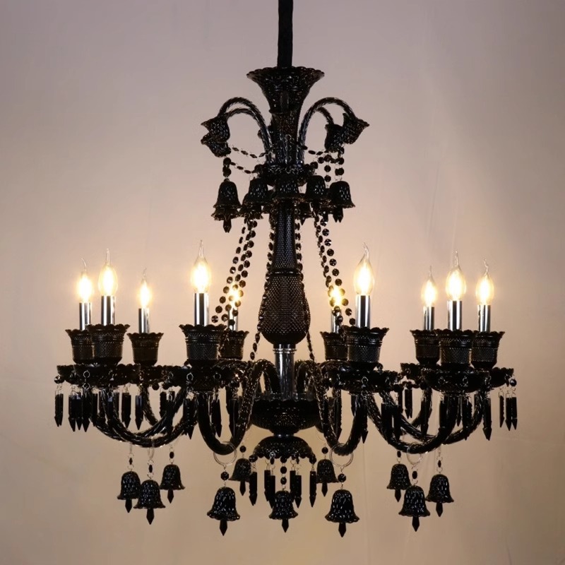 european-style black crystal lamp duplex staircase vintage villa hall chandelier clothing store hotel creative majestic lights 中文版
