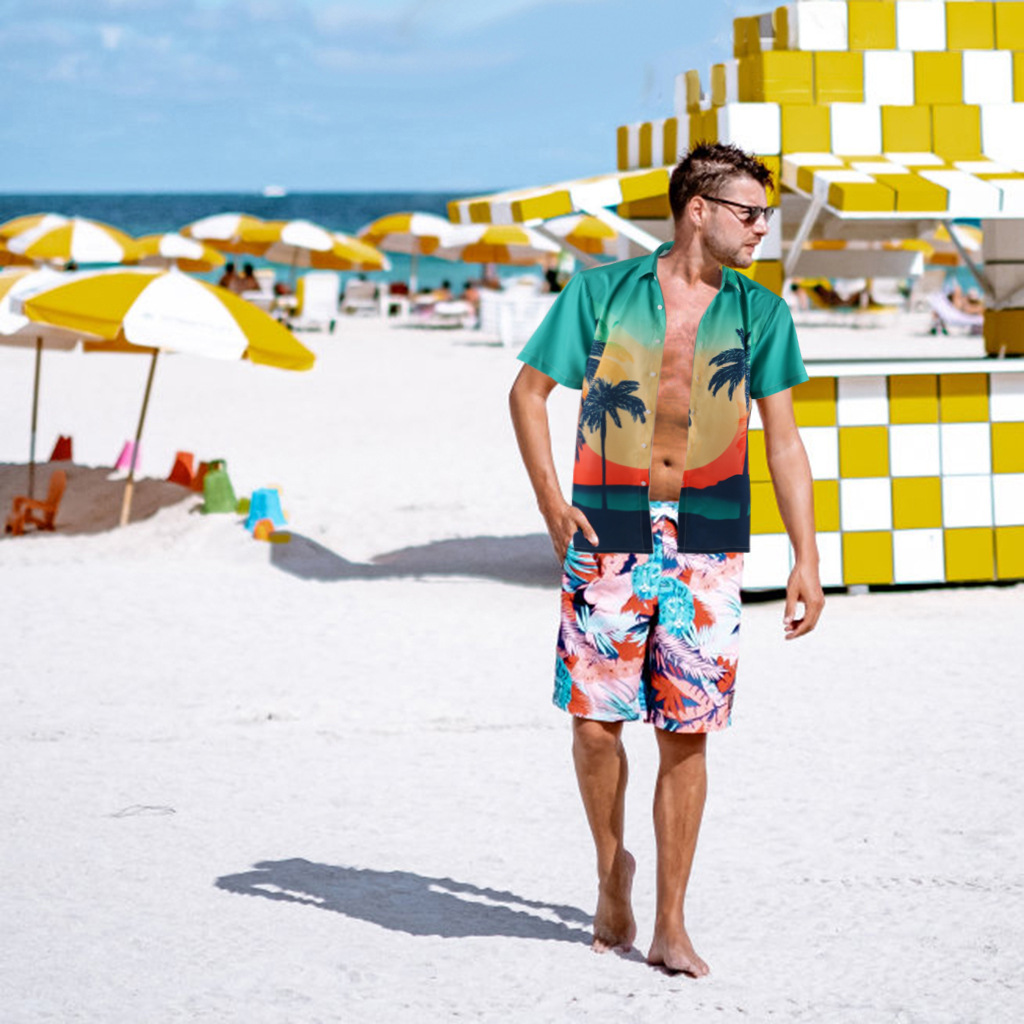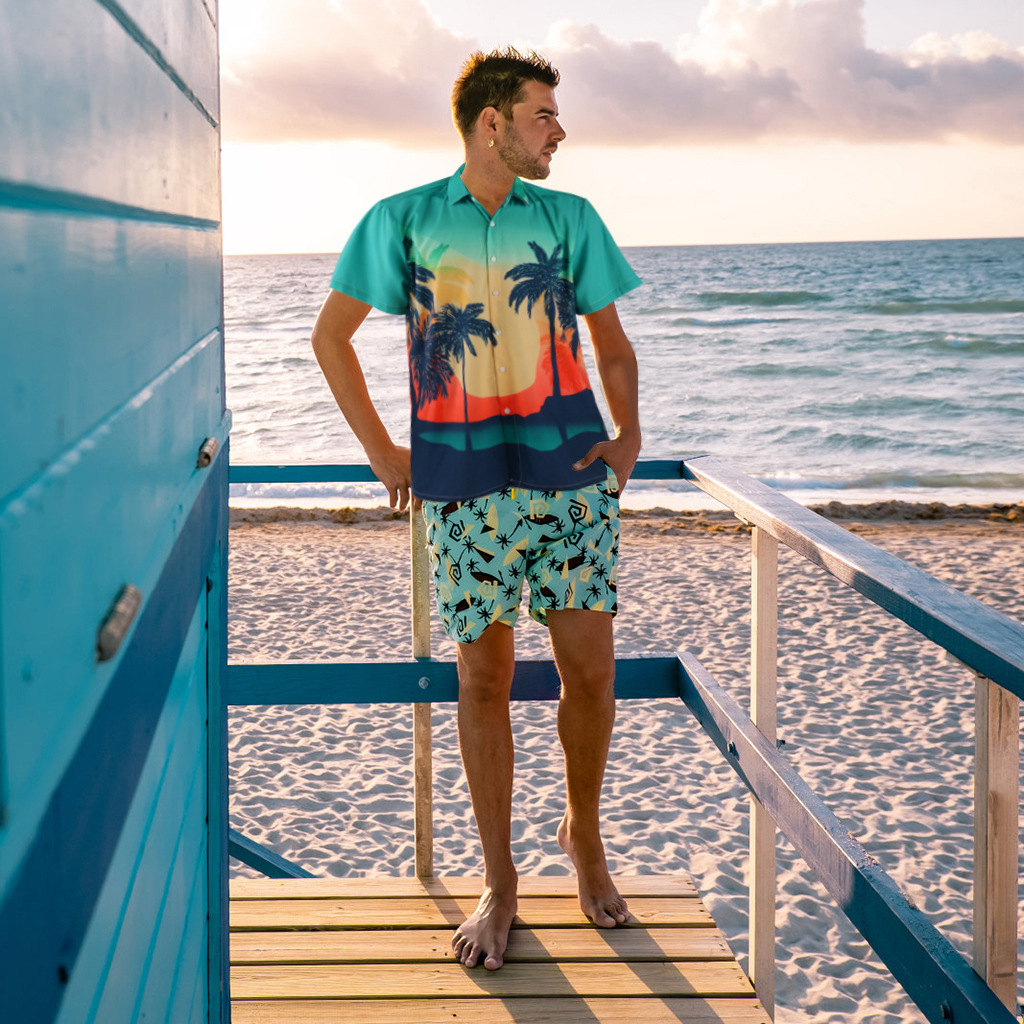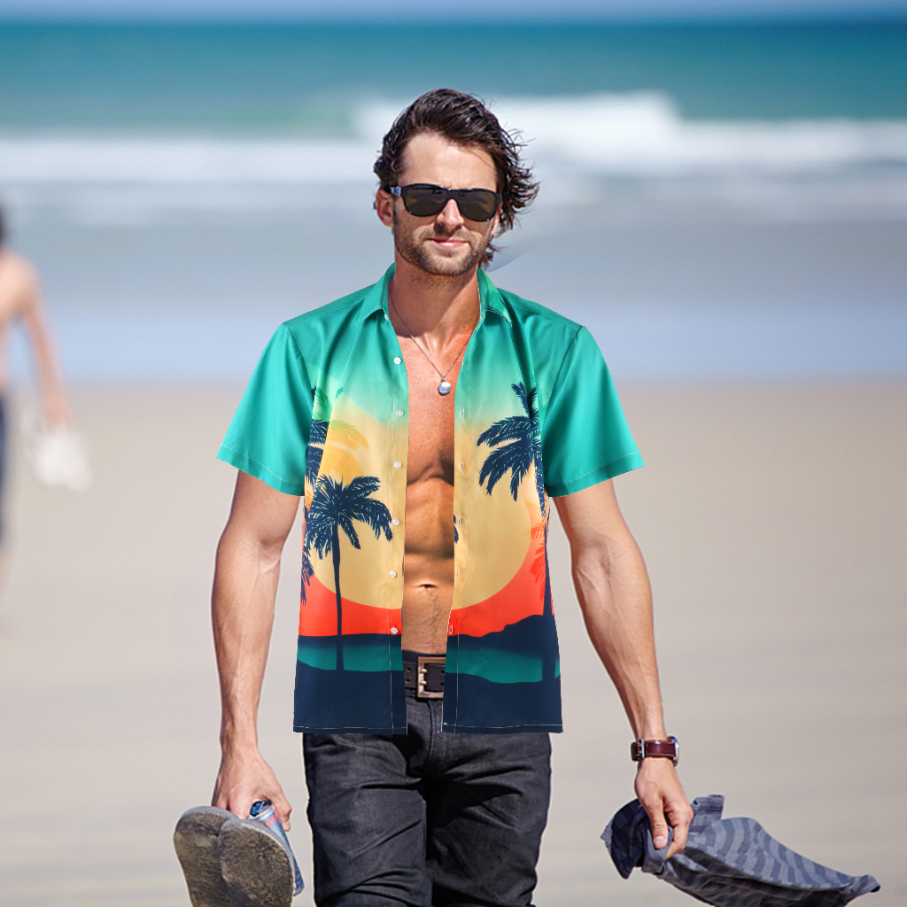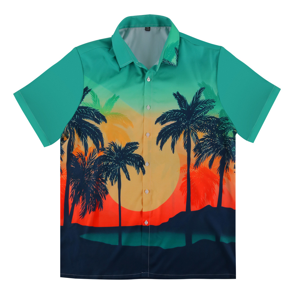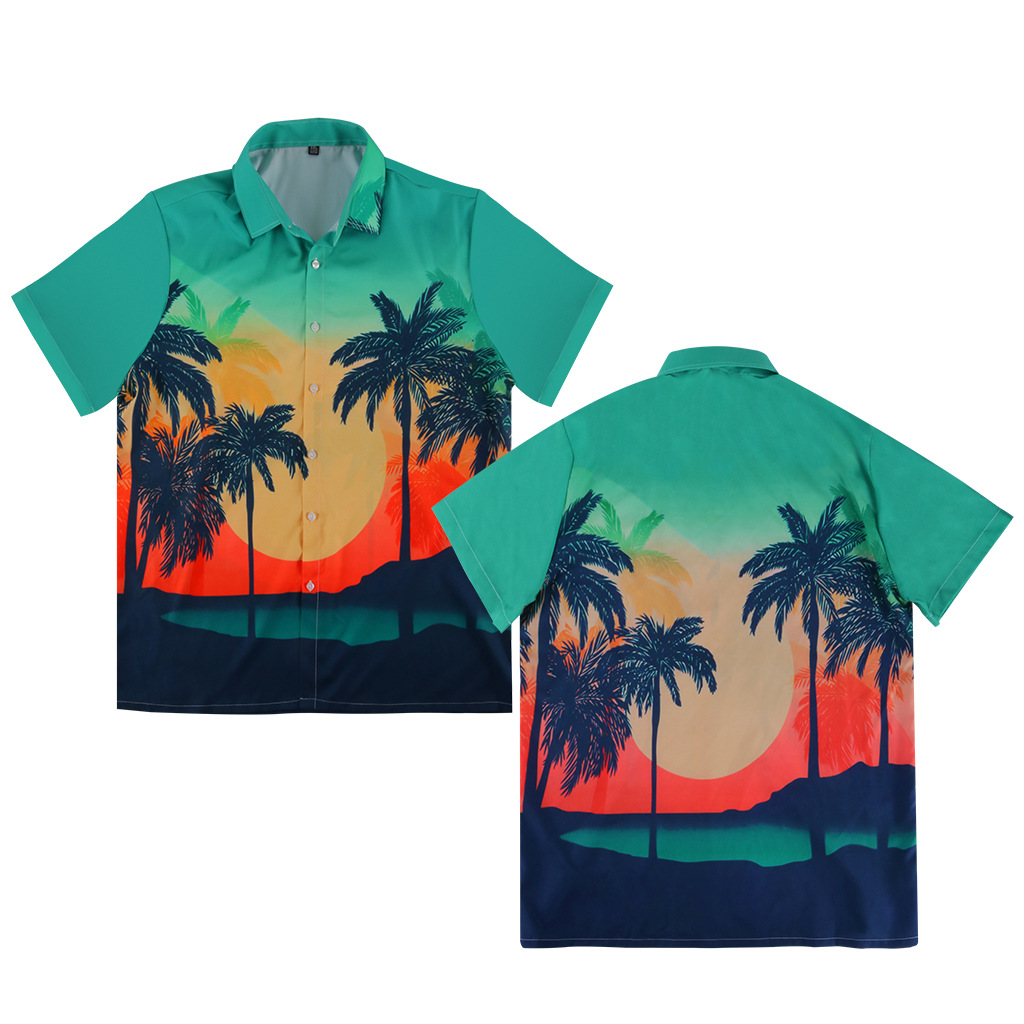 men's hawaiian rayon printed shirt beach style thin shirt factory direct sales 中文版