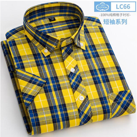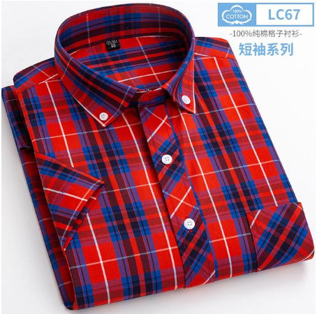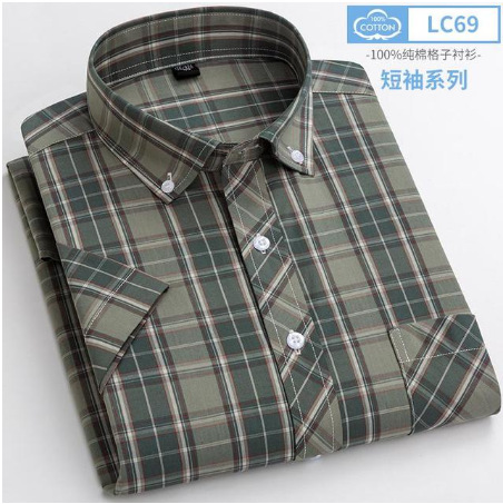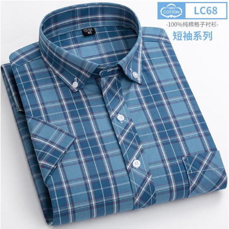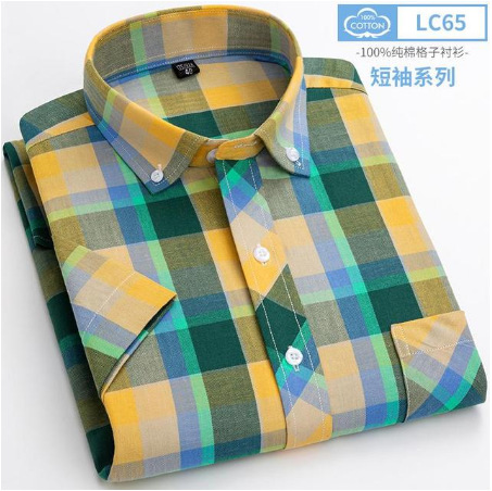 new youth short sleeve plaid shirt casual men's slim fitting shirts. soft and comfortable pocket decoration 中文版