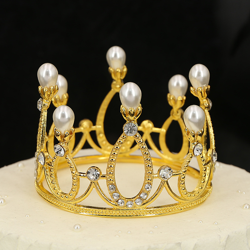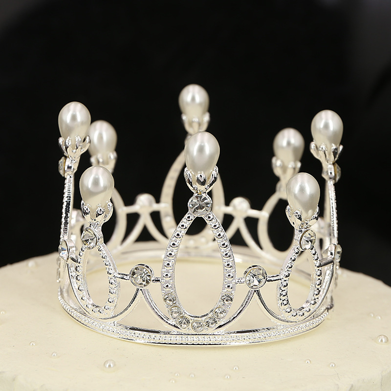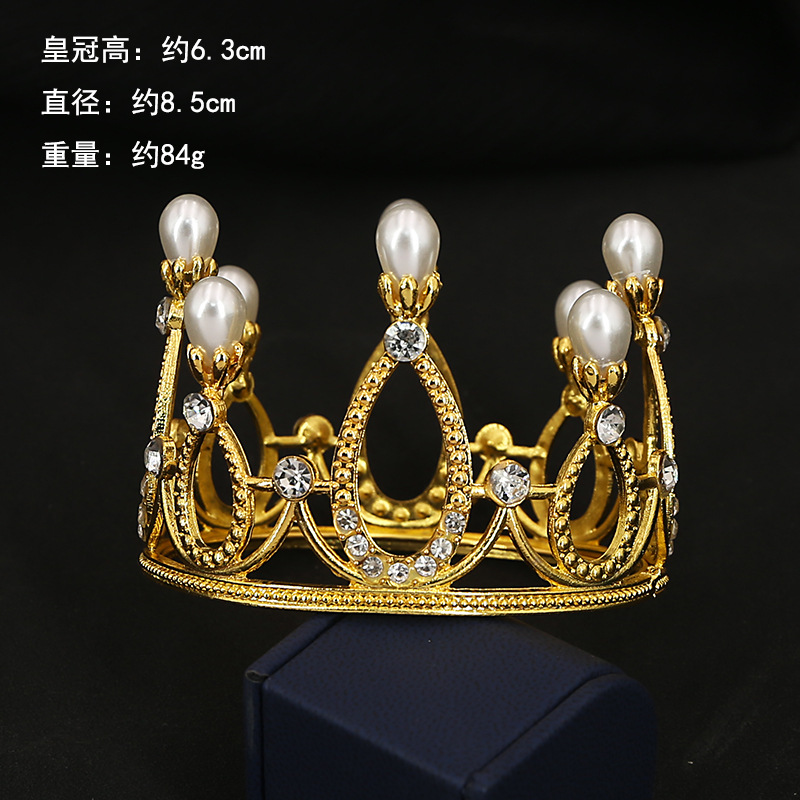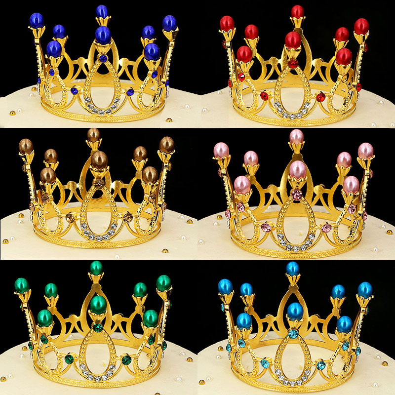 Original Cross-Border Flowers Children's round Crown Hair Ornament Bride Ornament Cake Baking Bright Pearl Crown in Stock King