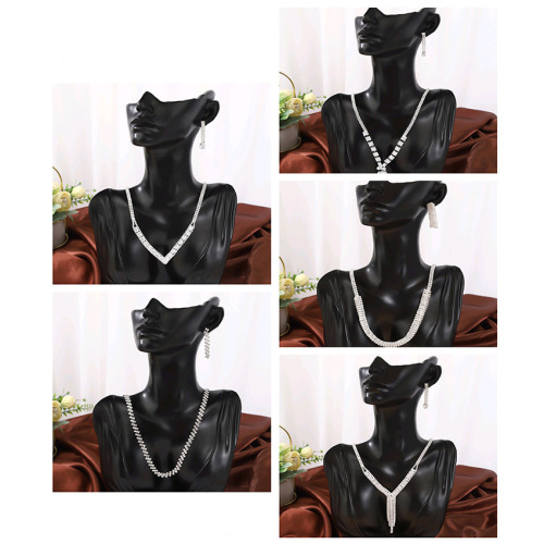 cross-border bright diamond water drop necklace earrings bride wedding jewelry jewelry necklace and earrings suite wholesale 中文版
