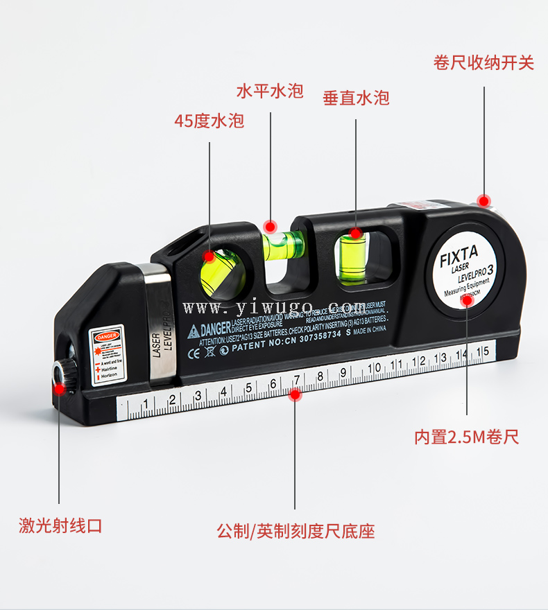Laser Level Small Household Decoration Horizontal Ruler Lifting Tripod Ranging Infrared Wire Bonding Machine Portable 中文版