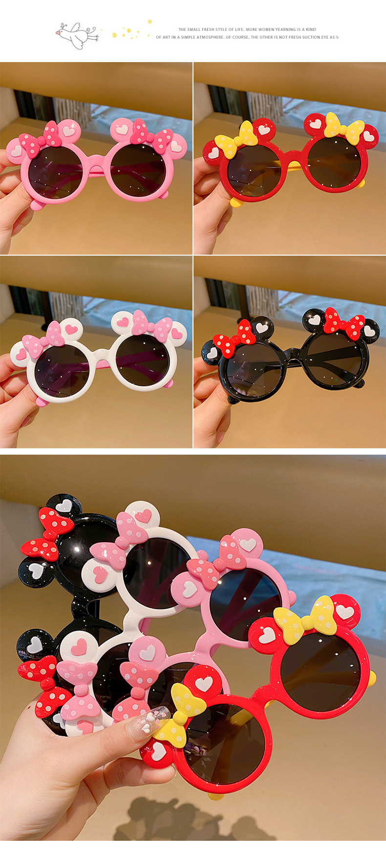 children's bow mickey sun glasses for girl cartoon sunglasses cute super cute girls baby minnie sunglasses