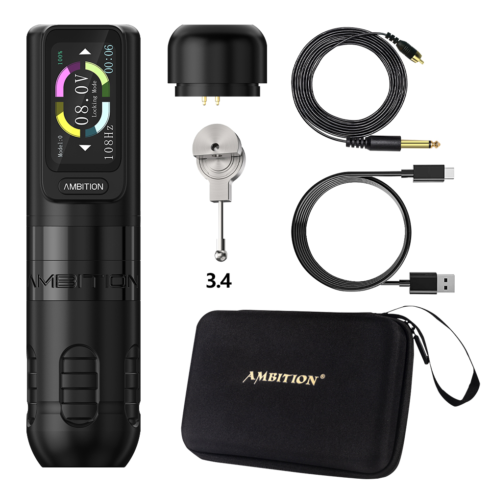 This new machine is our latest research achievement, and it is the first real touch screen battery and the first tattoo machine with built-in straight stroke accessories on the market.