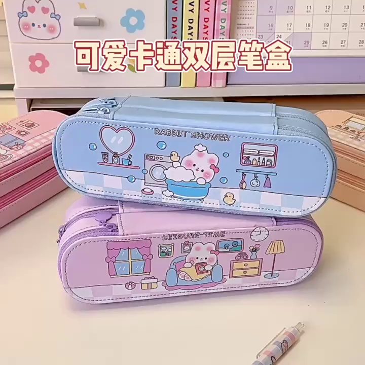 Double-Layer Pencil Case Stationery Box Pencil Box Cartoon Pencil Case Gift Student Pencil Case Pencil Case Pencil Bag 中文版