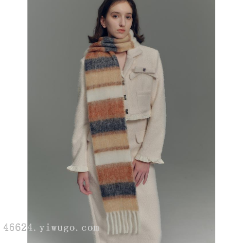cross-border scarf wholesale e-commerce live supply chain supply chain wool series wool monochrome horizontal striped scarf 中文版