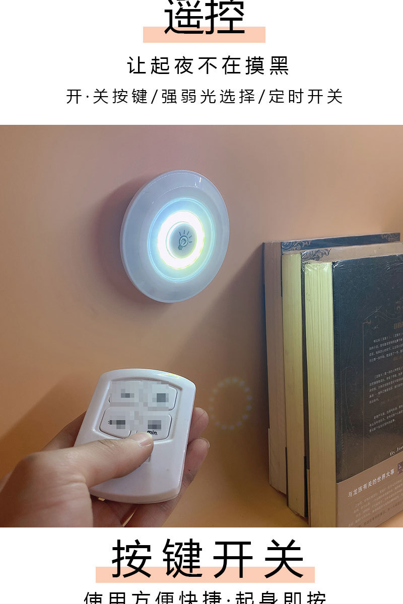 Function Introduction: Press the lampshade on the lamp to turn on the light, the remote control distance is more than 6m, and the remote control function button introduction: On/Off + Timer 30 minutes + 50% dimming and 100% full brightness switching button