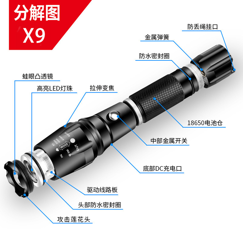 foreign trade exclusive hot-selling direct-punch outdoor flashlight portable zoom power torch 中文版
