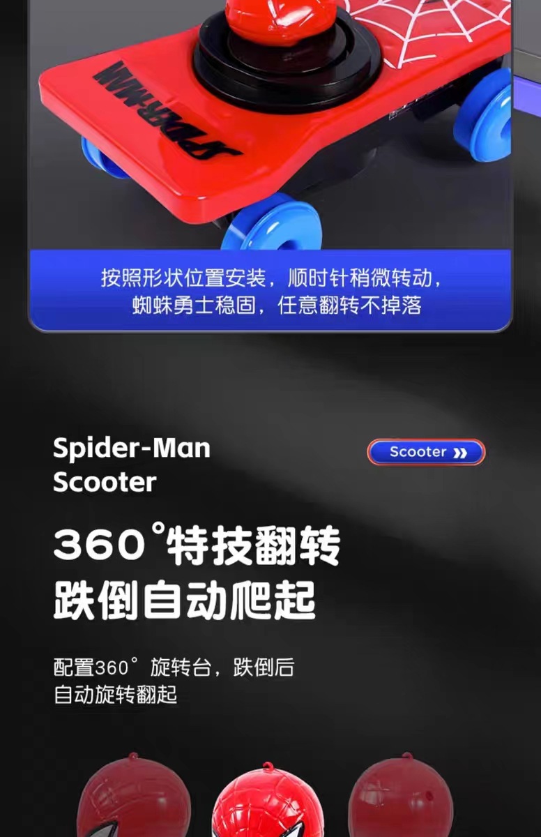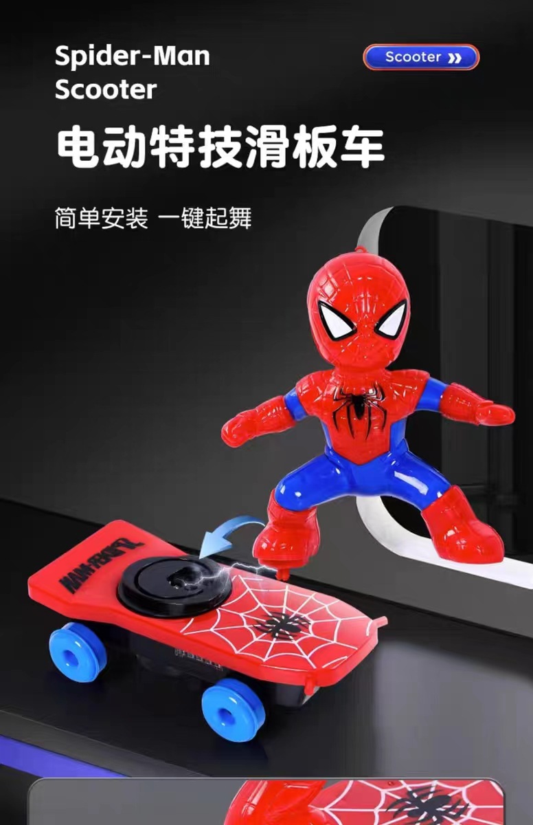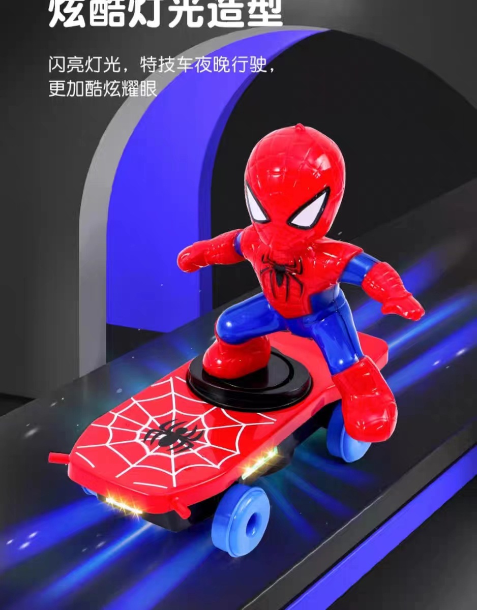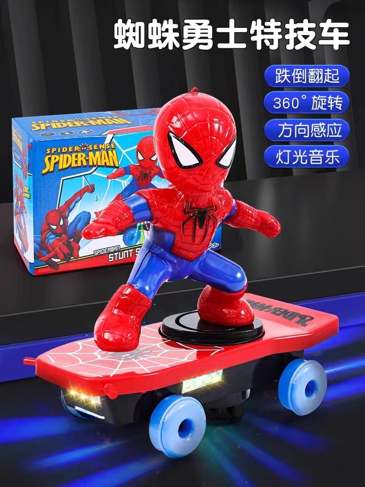 douyin same spider-man skateboard stunt car 360 degrees electric frog superman scooter children's educational toys 中文版