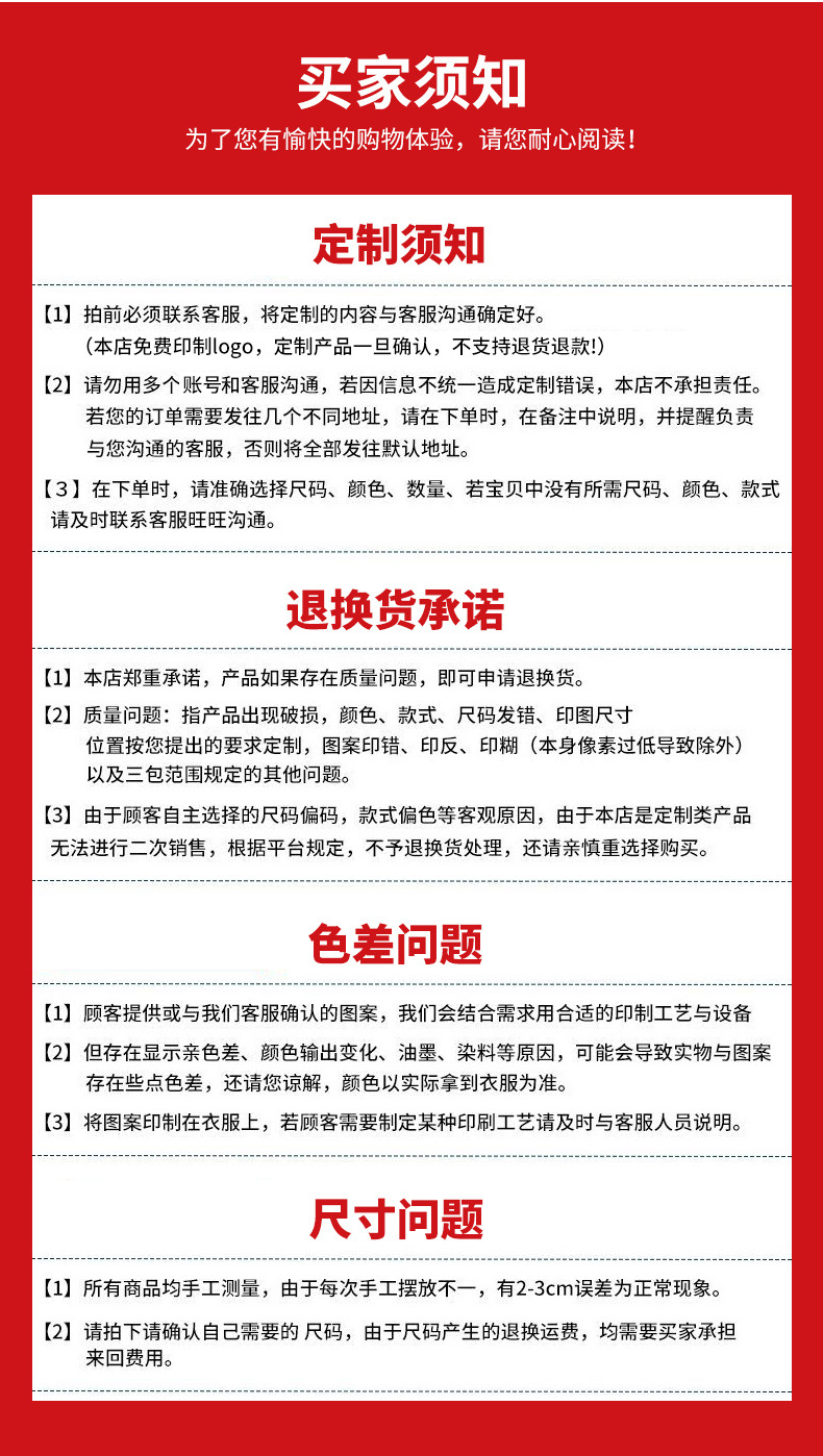 Attention: Our in-stock products support a 7-day return policy without any reason, but custom products do not support a return policy without any reason. Please understand and forgive!