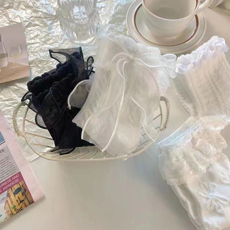 simple white bow lace socks women's tube socks summer thin japanese sweet lolita lace jk socks