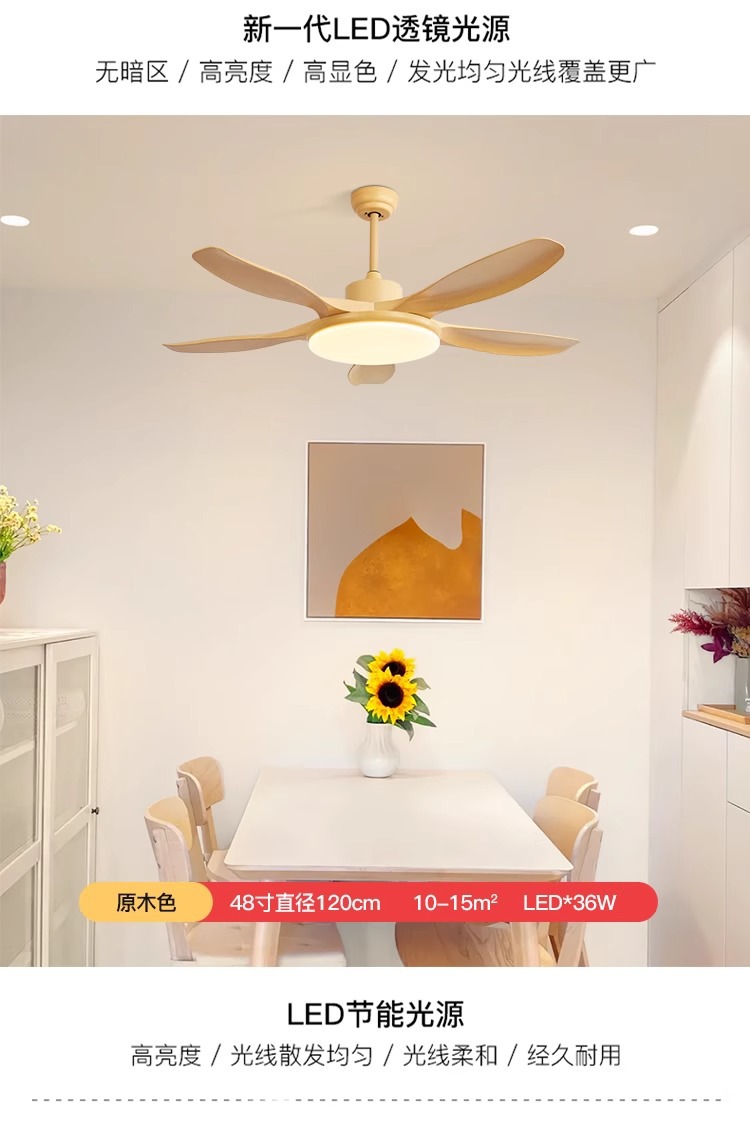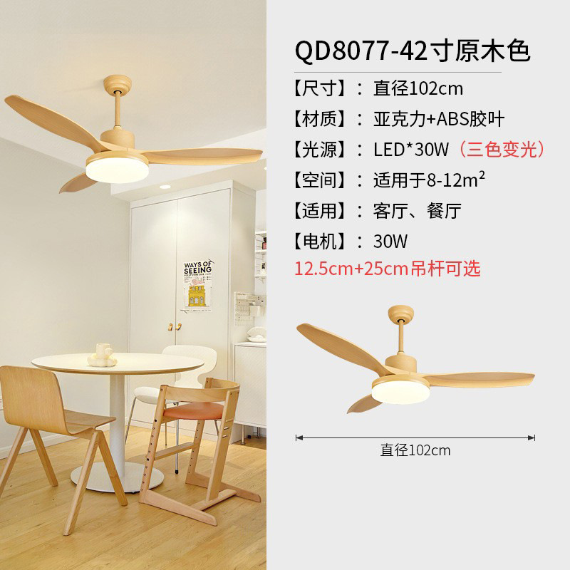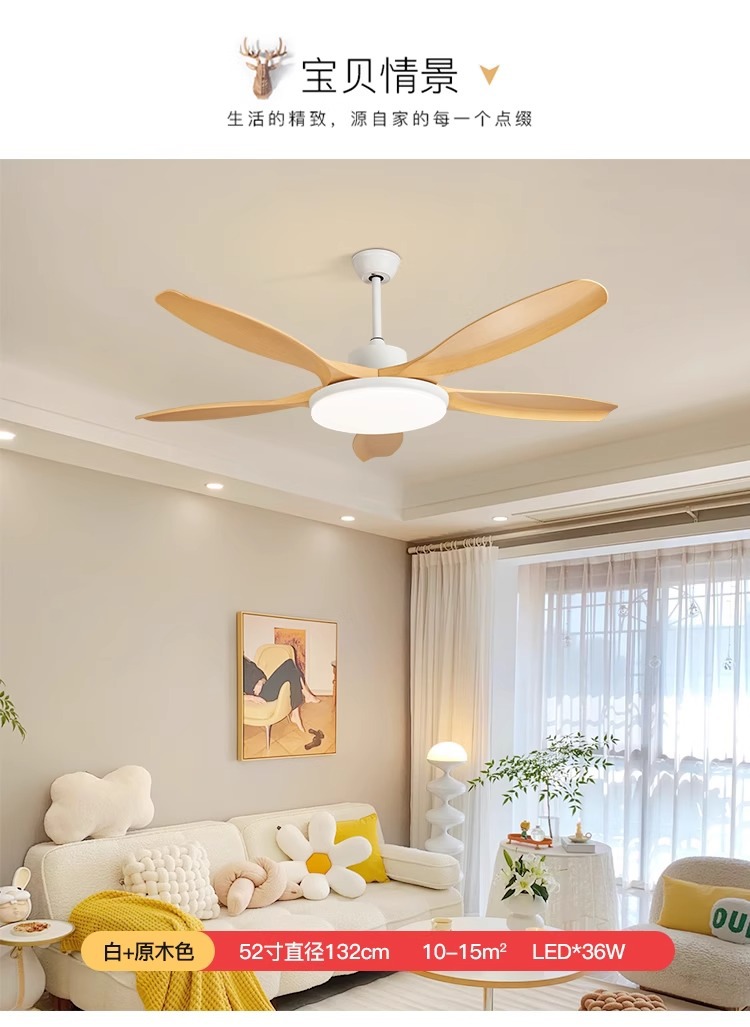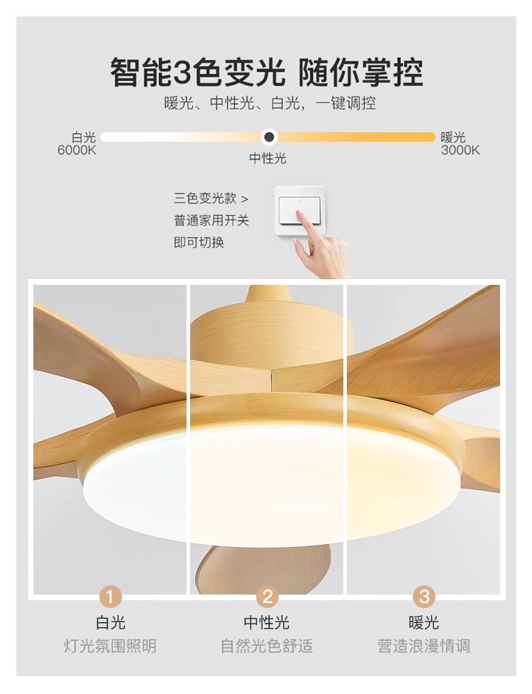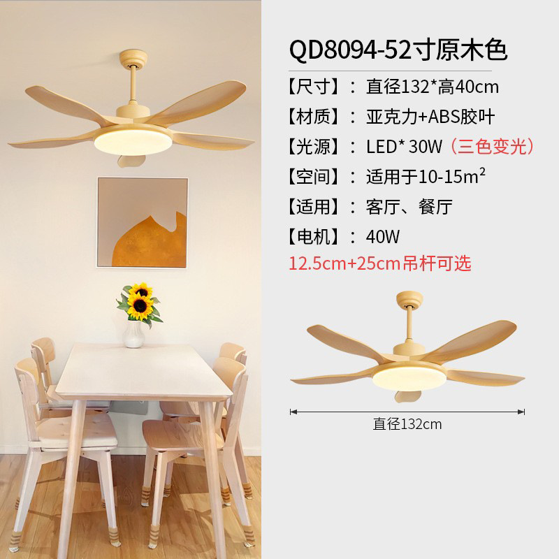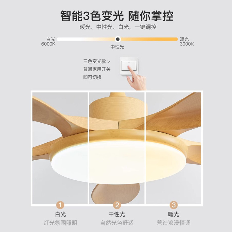 log style 52-inch simple fan lamp full spectrum frequency conversion three-color restaurant ceiling fan lights ceiling with fan lamp in the living room