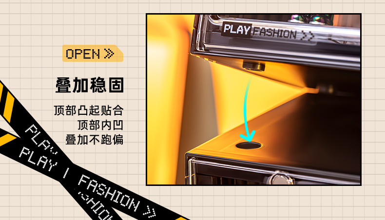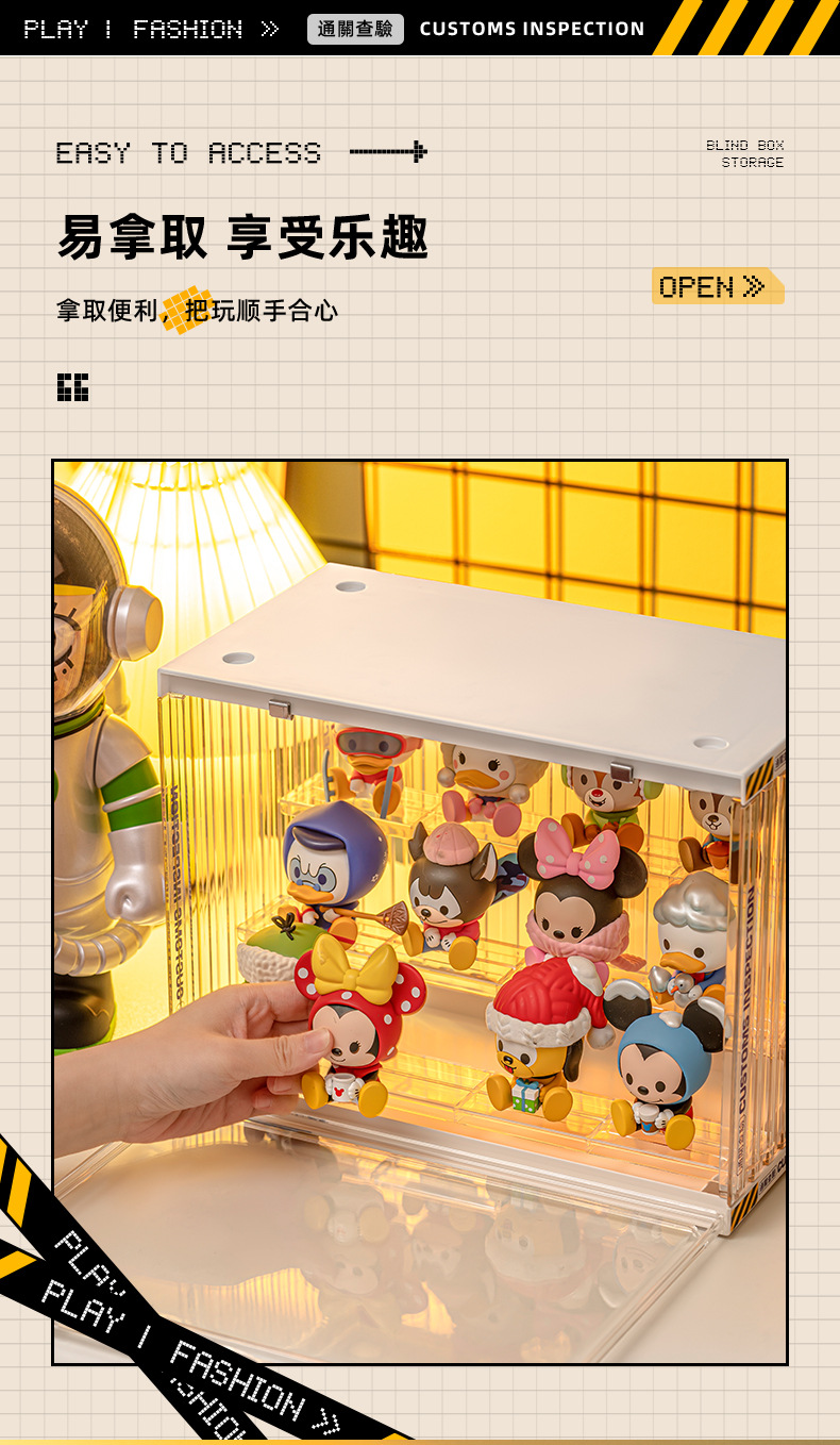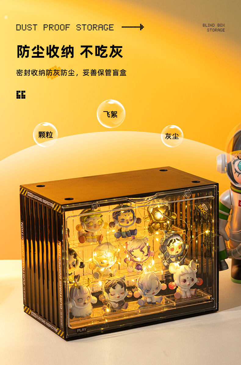 Container with power plug, large size three-tier figure storage box. Product size: 30*17*23.5cm. Individual packaging size: 27.5*9.5*35cm. 8-piece set size: 43.5*37*57cm