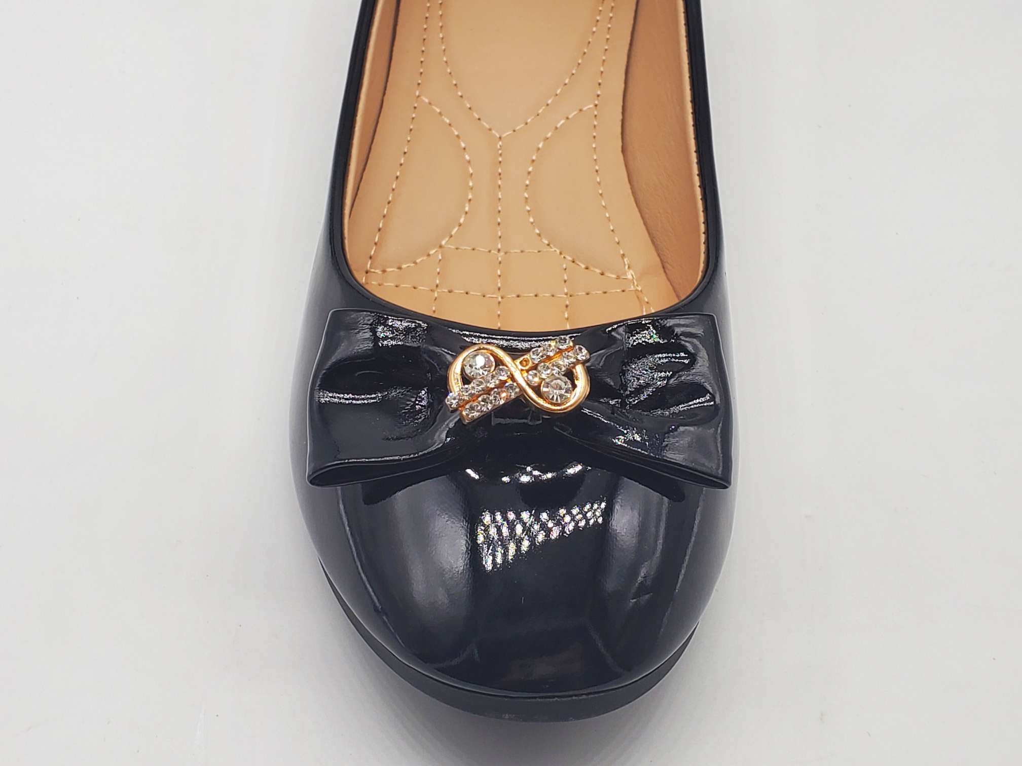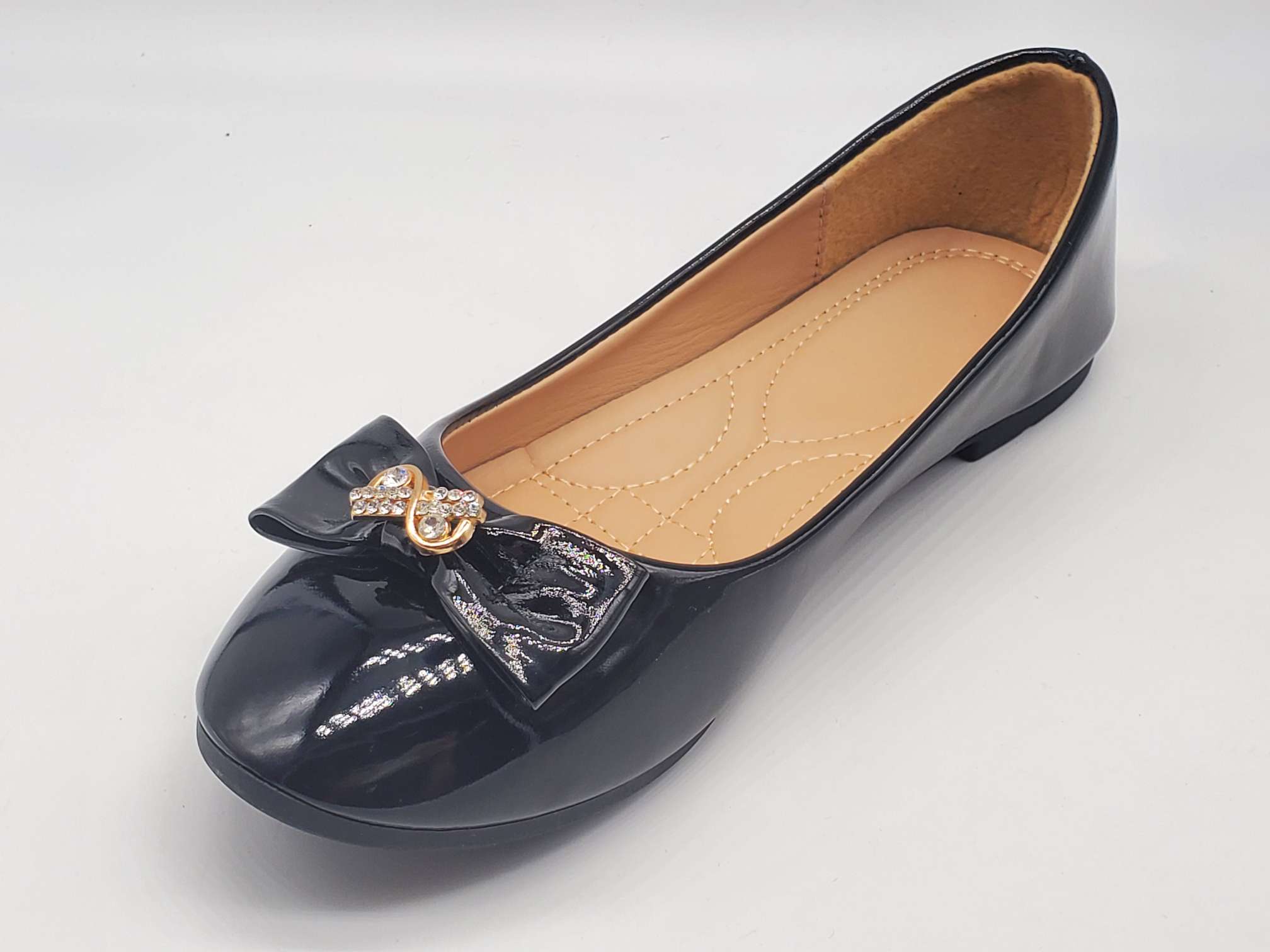 Product Name: Guangdong Women's Shoes with Black Mirror Finish and Bow Accent, Directly Sold by the Manufacturer