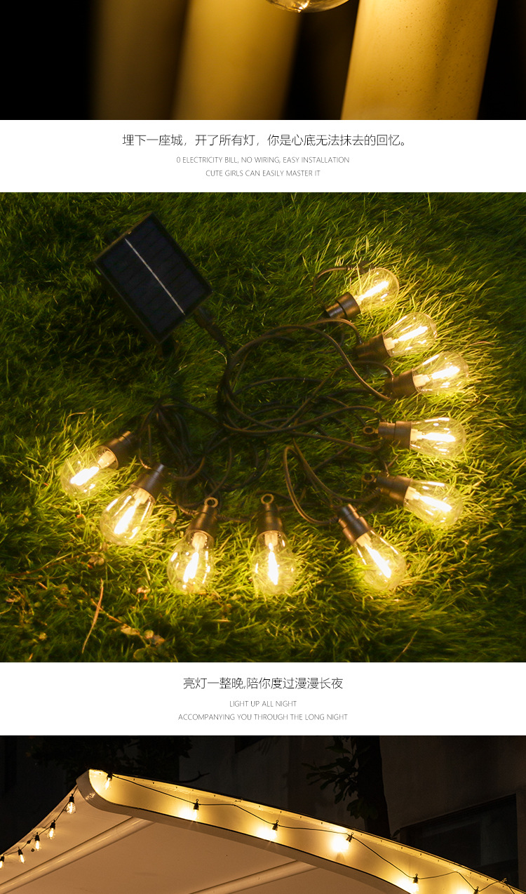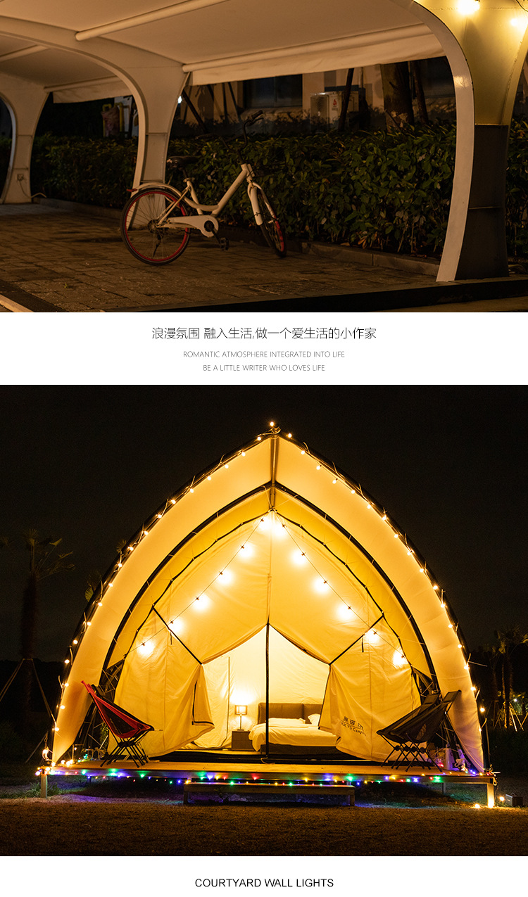 Sor-Powered String Lights Outdoor Camping Ambience Light Canopy Tent Decorative Lights Night Market Stall Led Ambience Light Strings