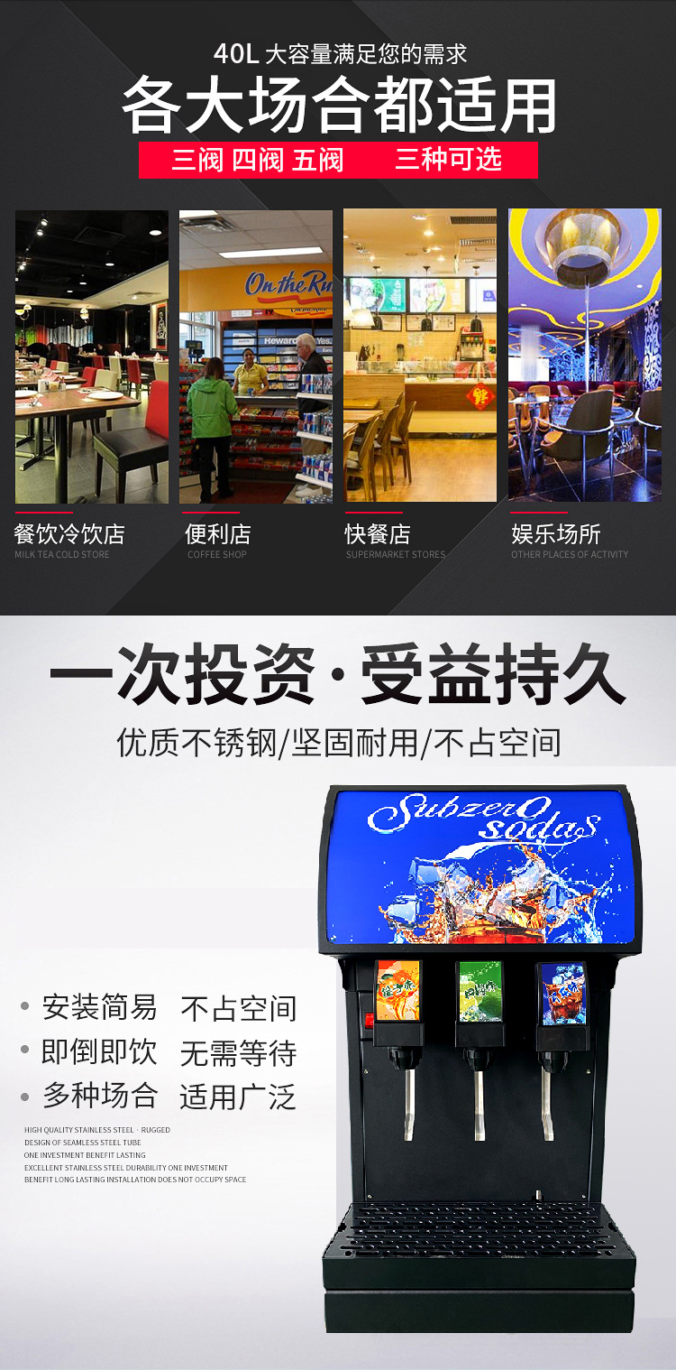 cola machine commercial baishi cola syrup cold drink machine now adjusted steam drum hamburger shop three-valve self-service carbonic acid drinking machine 中文版