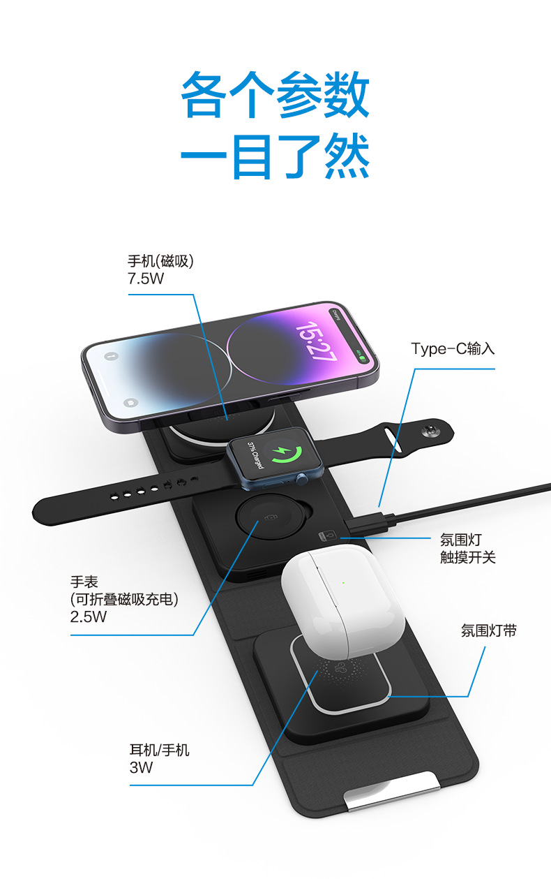 f27 white color folding two-in-one wireless charger