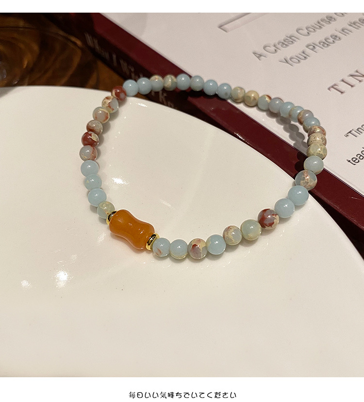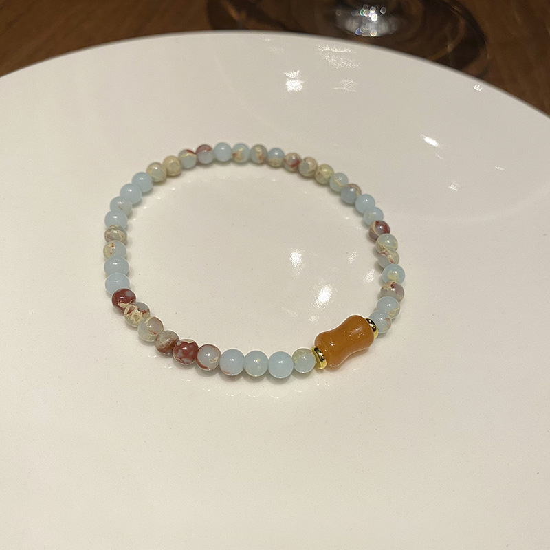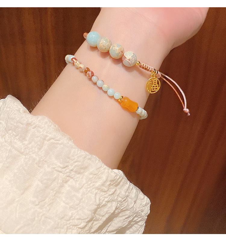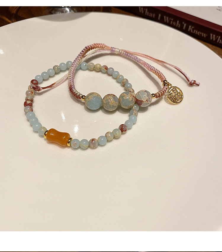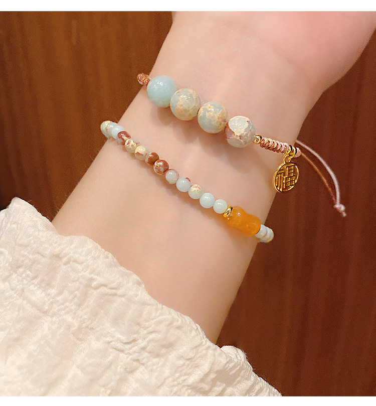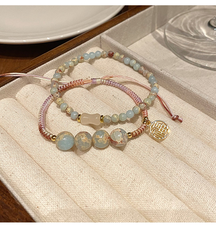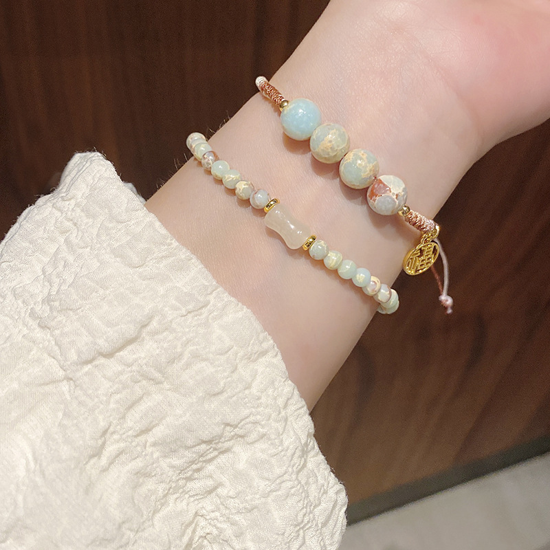 New Chinese Style Shoushan Stone Beaded Bracelet Girls' Girlfriends Vintage Bamboo Bracelet Color Handmade Woven Twin Bracelet 中文版