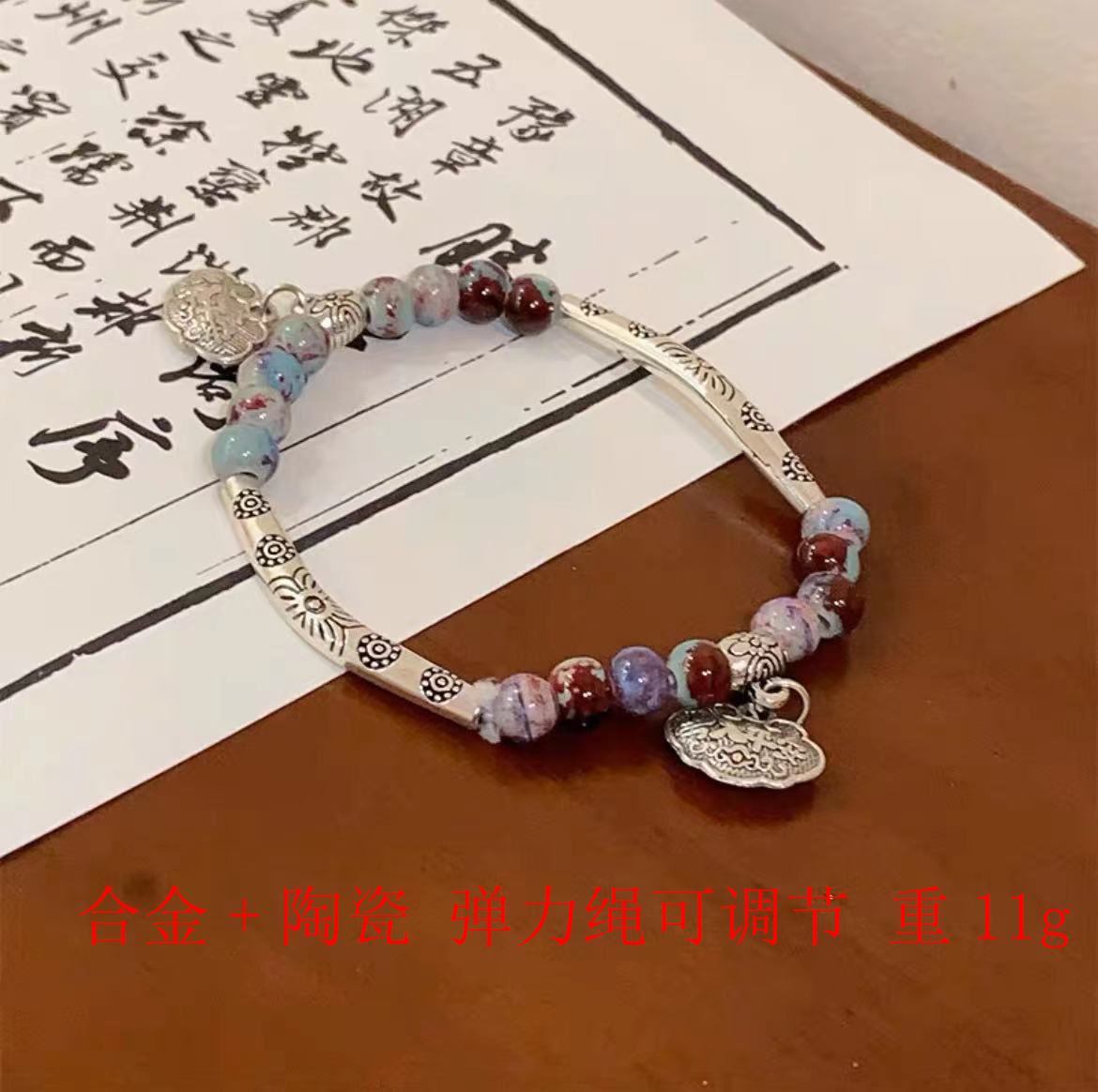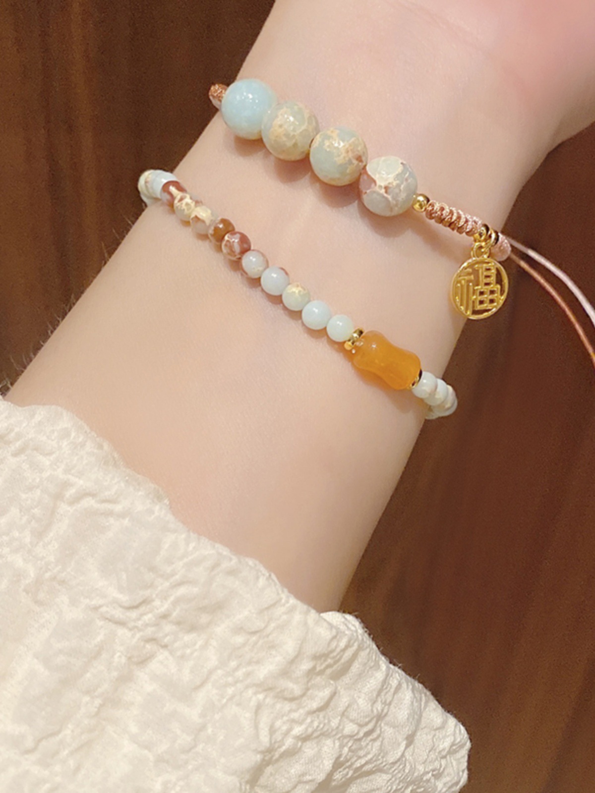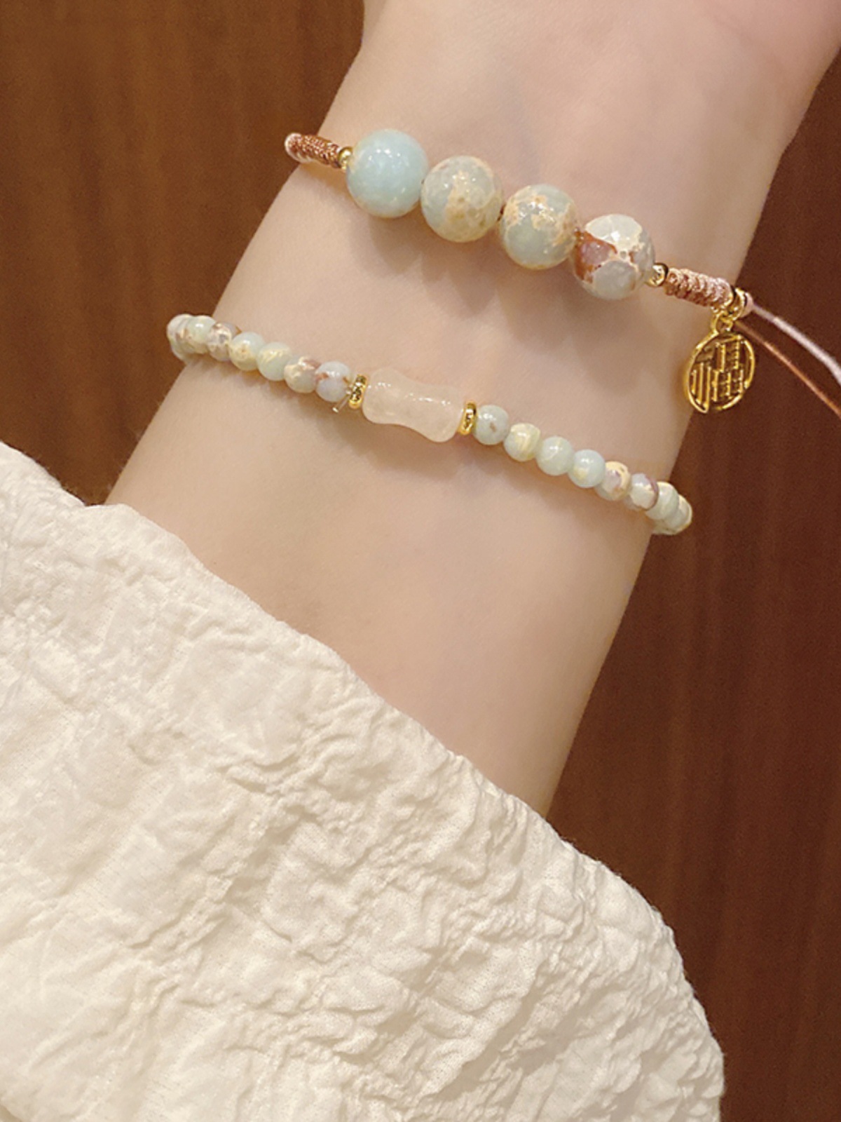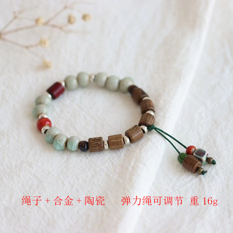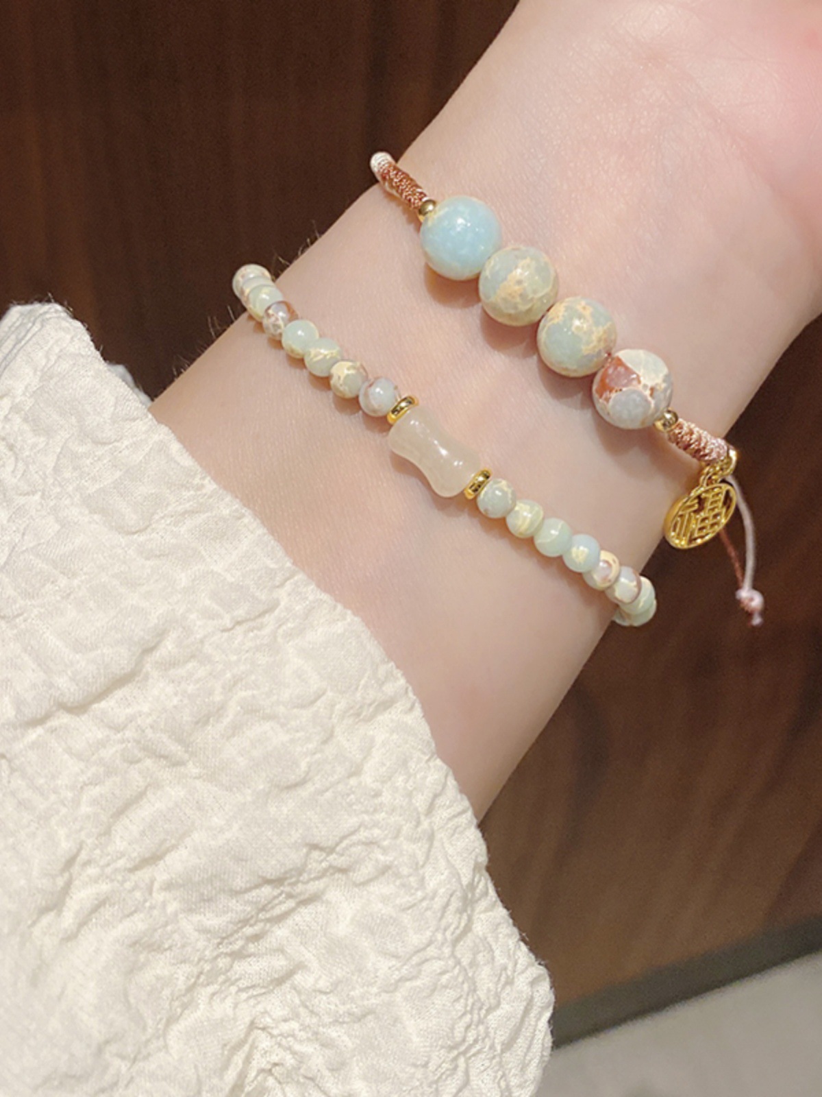 New Chinese Style Shoushan Stone Beaded Bracelet Girls' Girlfriends Vintage Bamboo Bracelet Color Handmade Woven Twin Bracelet 中文版