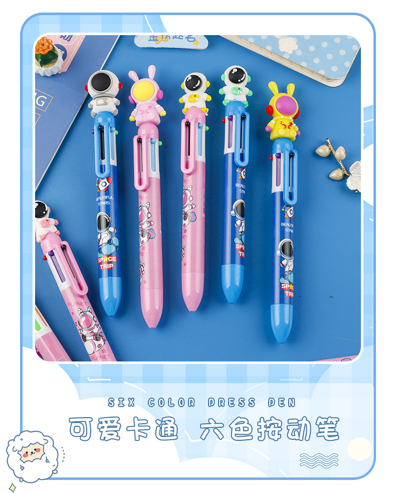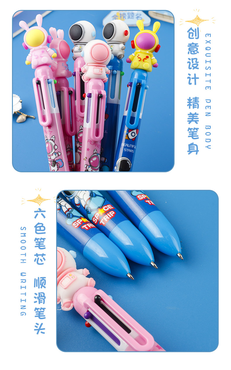 Astronauts press the six-color ballpoint pen