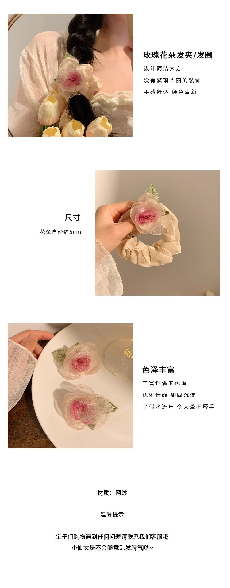 dried rose barrettes
