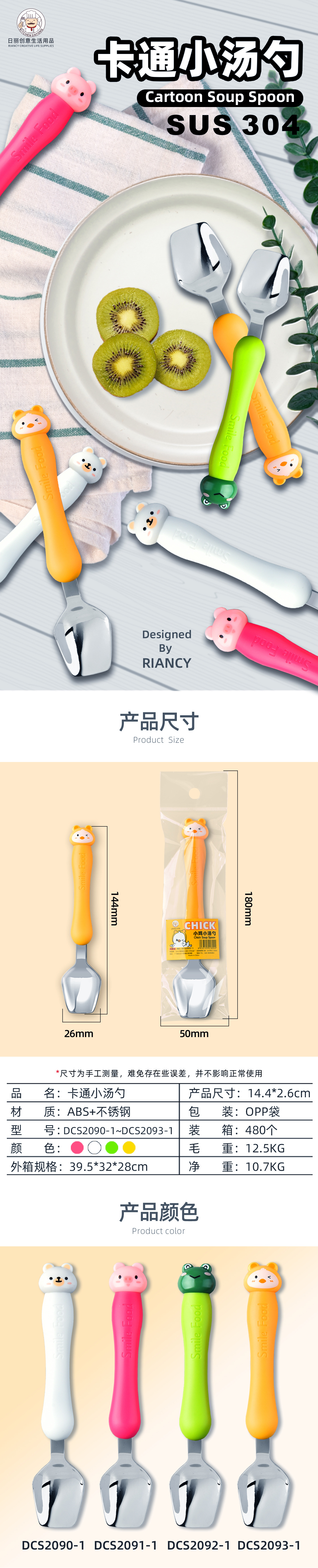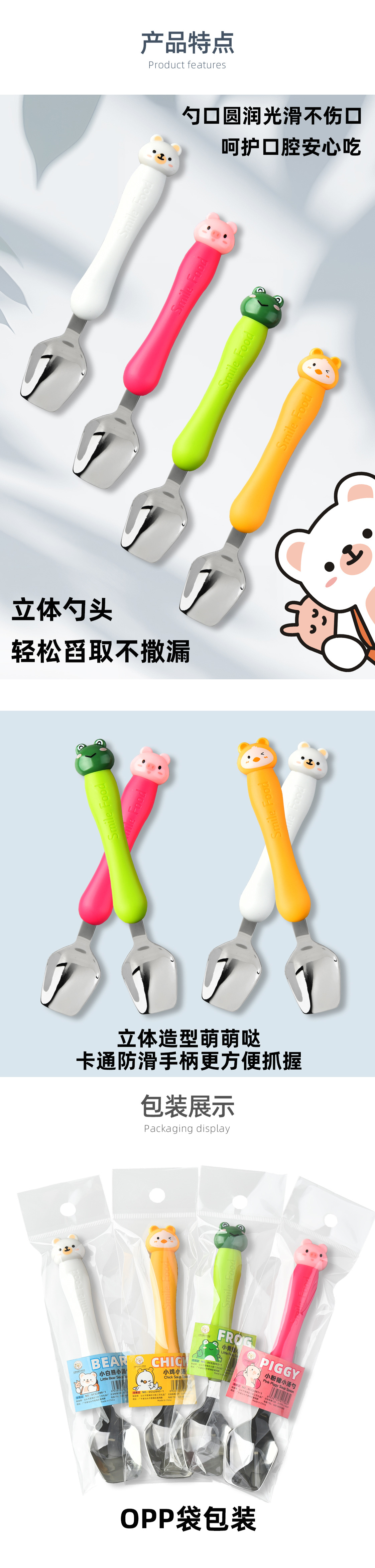 wholesale spoon children eating cartoon cute animal student only portable tableware household spoon promotion factory straight
