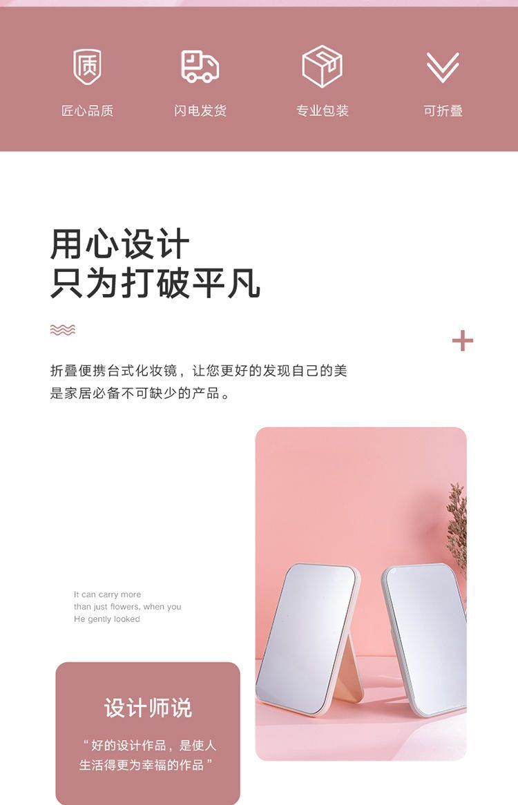 factory direct sales desktop cosmetic mirror portable folding mirror color plastic square hd single-sided cosmetic mirror 中文版