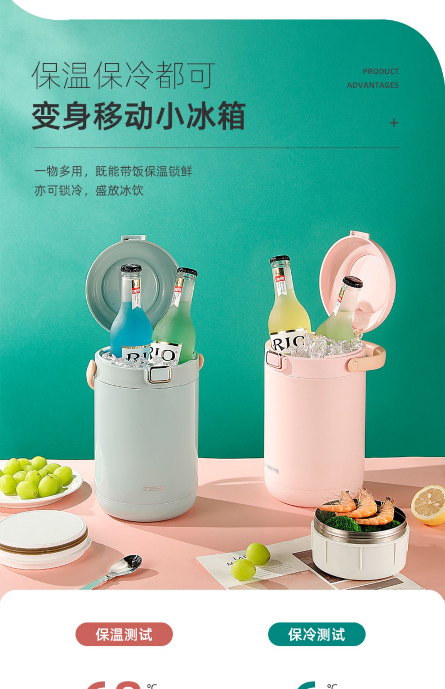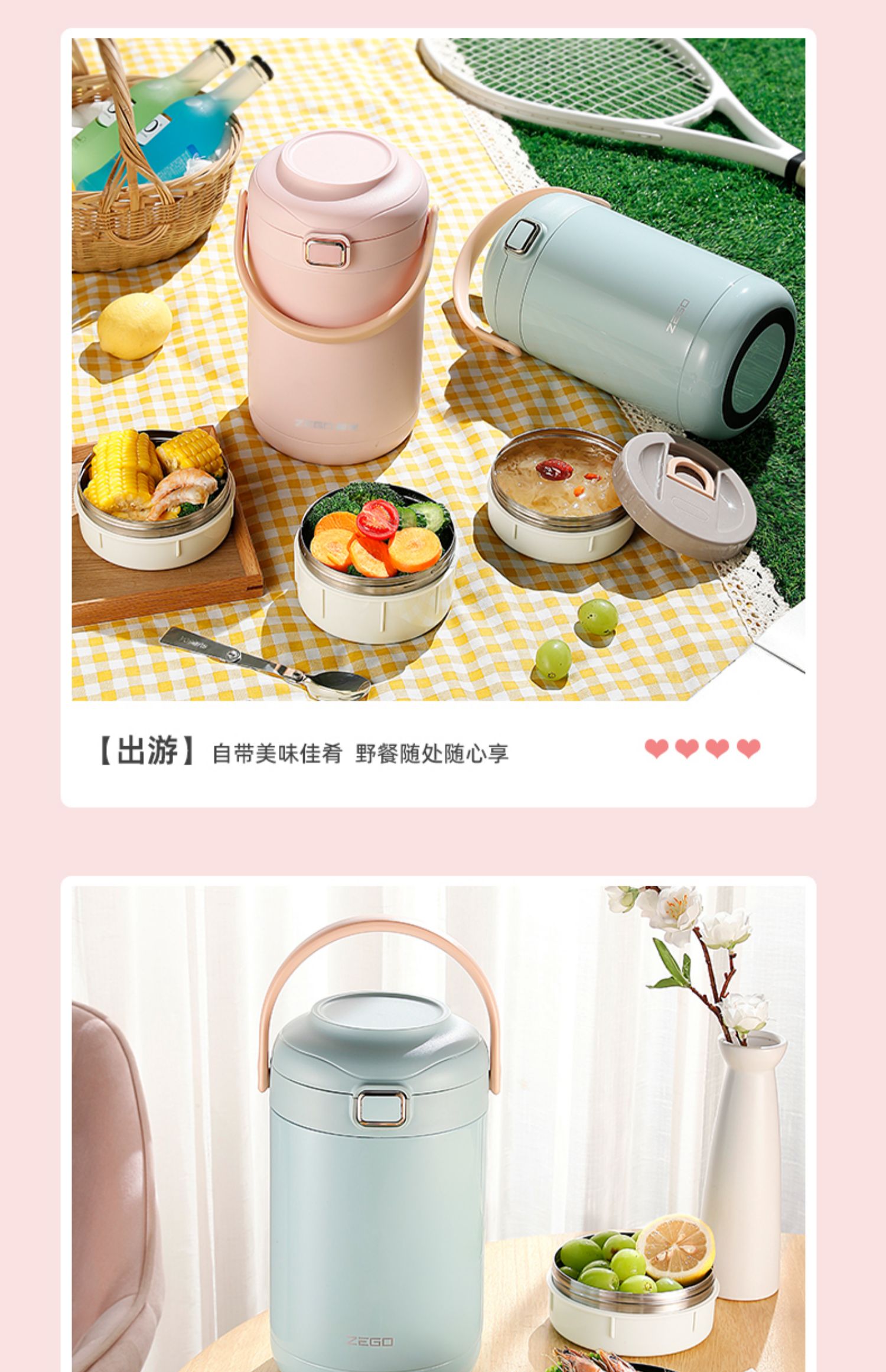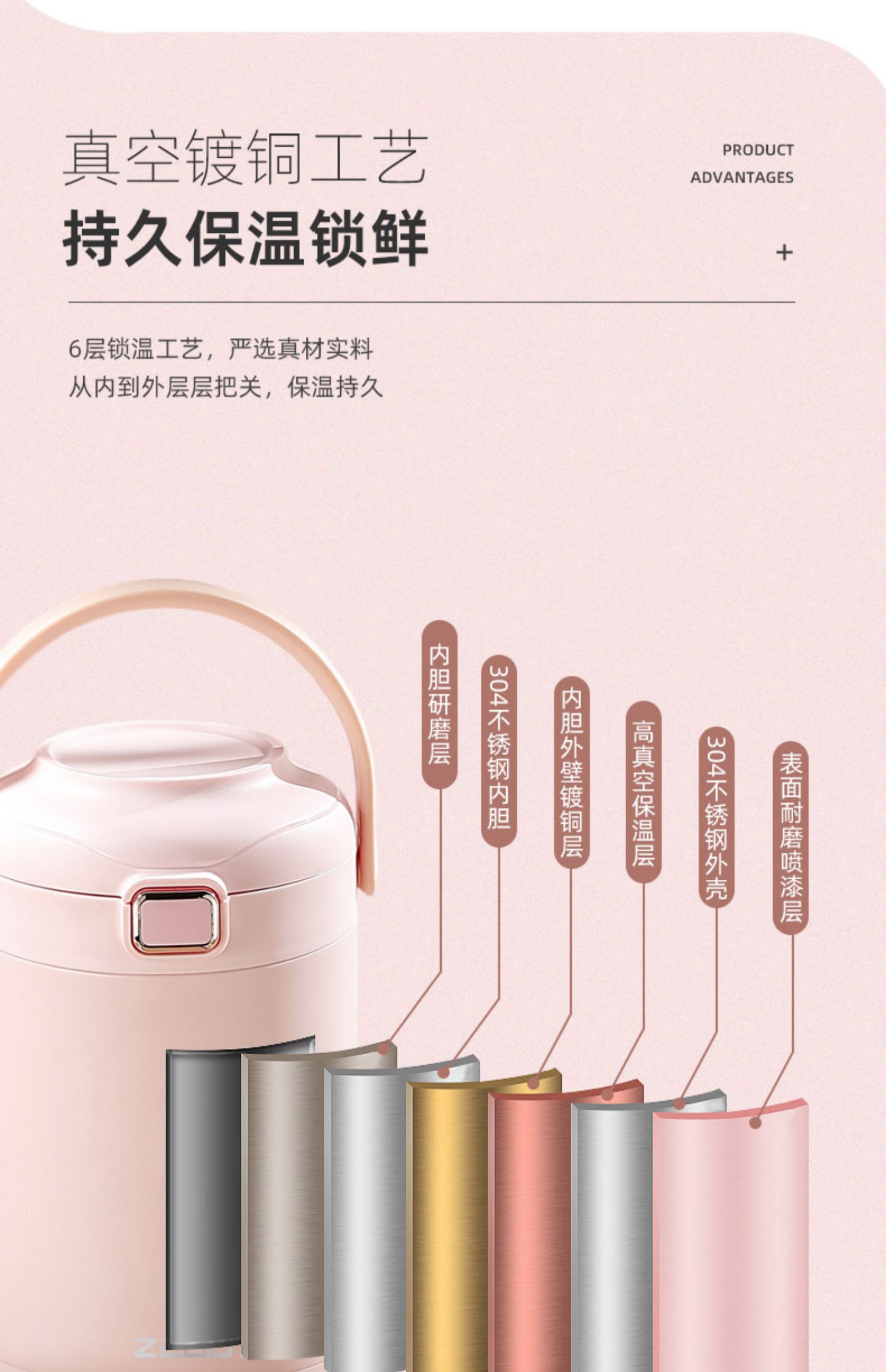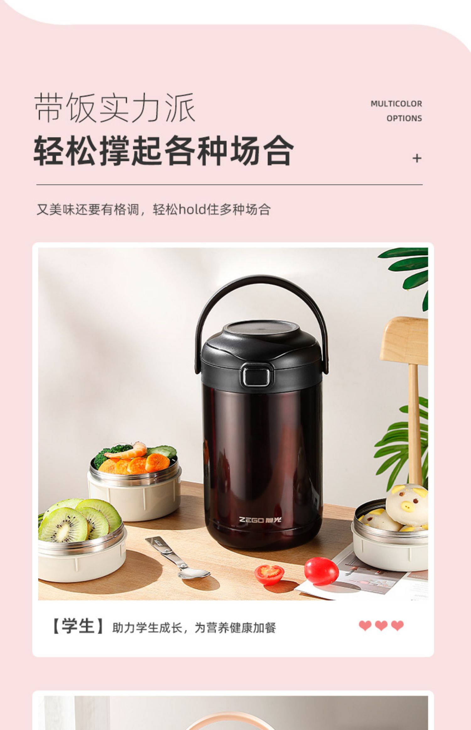 [new] vitality pink 2l three-layer [send folding spoon + high-end insulation bag]]