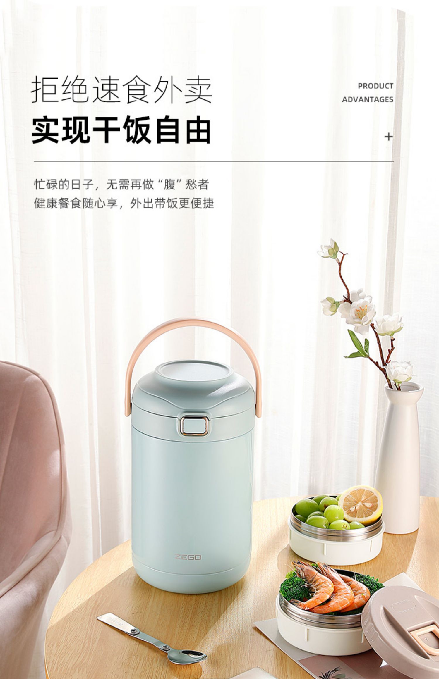 [new] sky blue 2l three-layer [send folding spoon + high-grade insulation bag]]