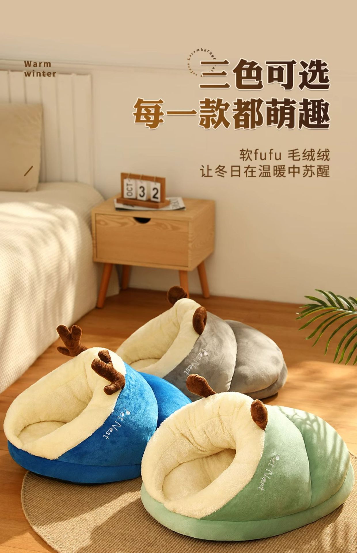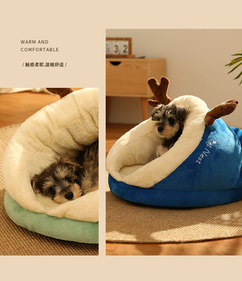 | [elk blue] three-layer fleece lined thick warm wrapped slippers nest | ¥66.5 | 11792 piece available |