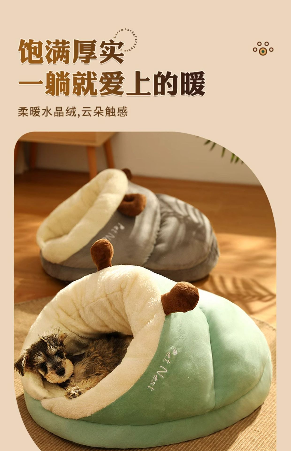 | [brown bear gray] three-layer fleece lined thick warm wrapped slippers nest | ¥41.5 | 11023 piece available |