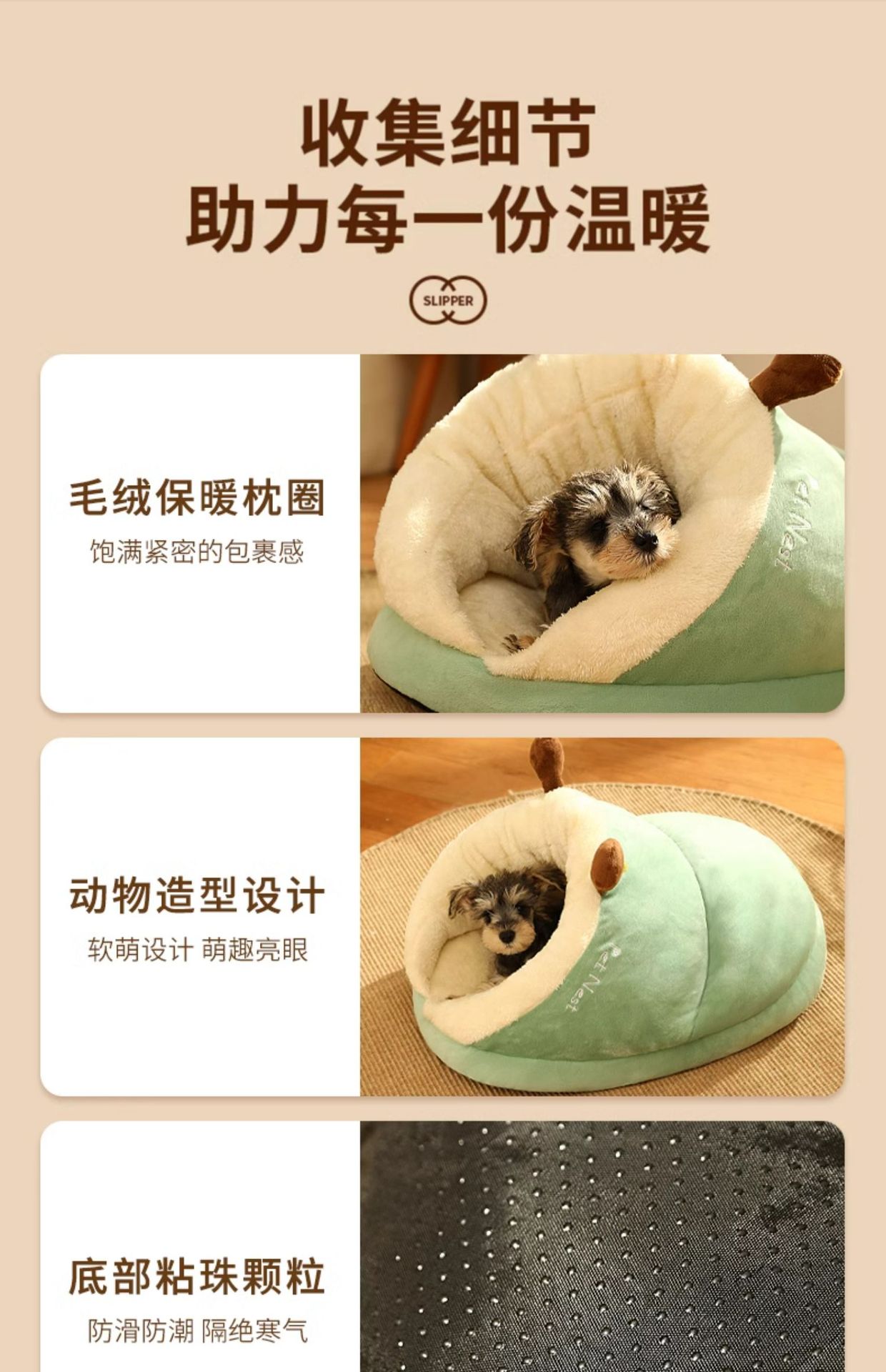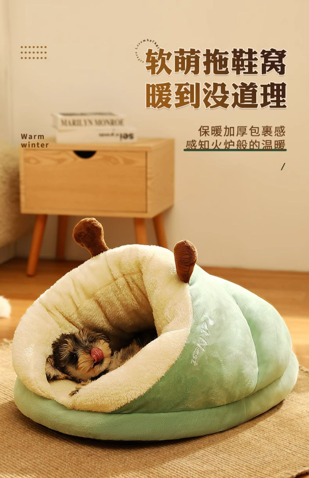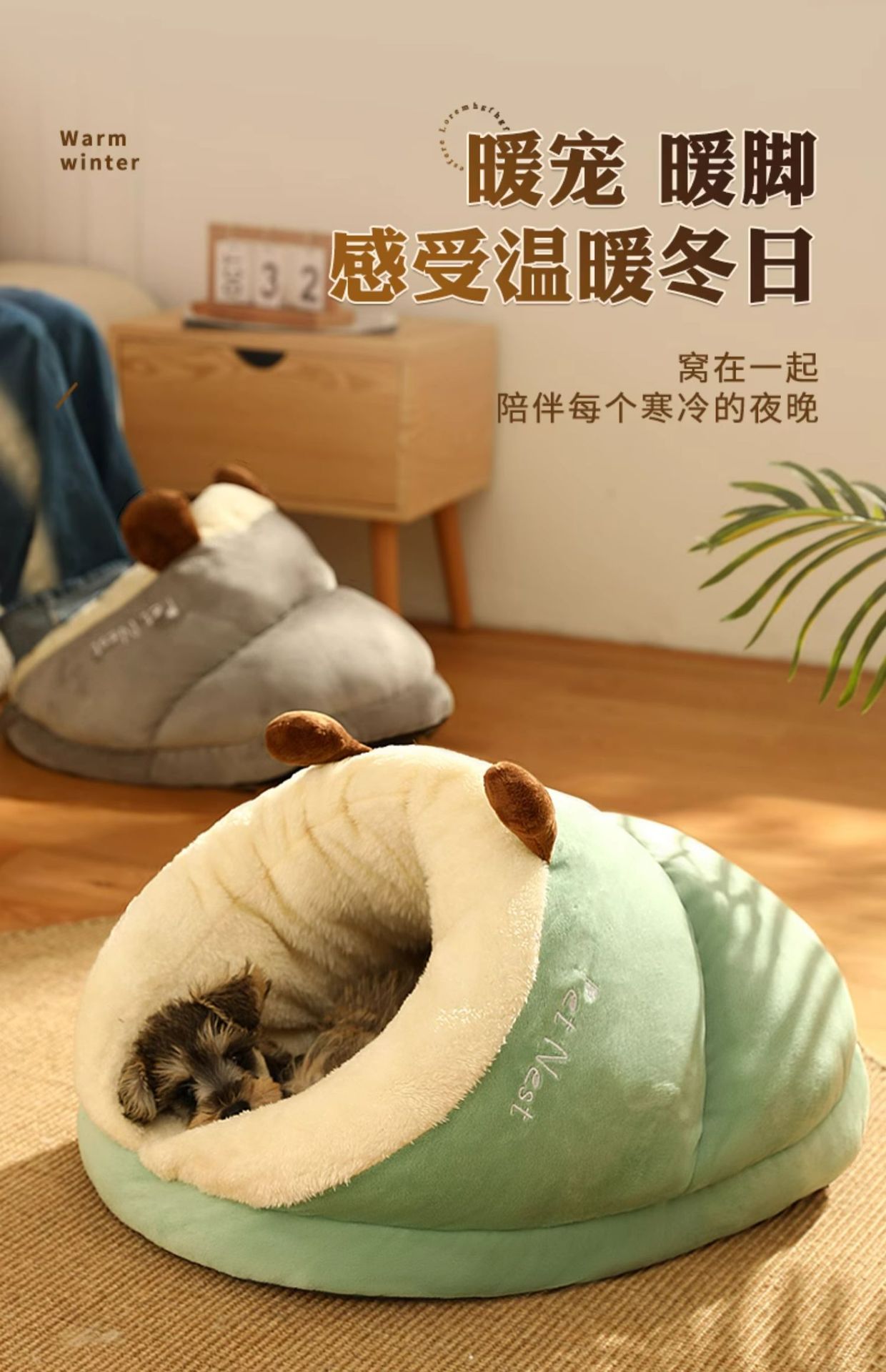 | [avocado green] three-layer fleece lined thick warm wrapped slippers nest | ¥41.5 | 11671 piece available |