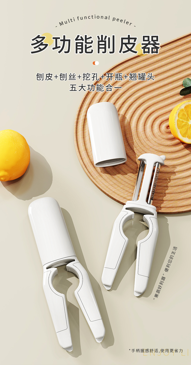 white【 peeler + slicer + hole digging + bottle opening + can warped]]