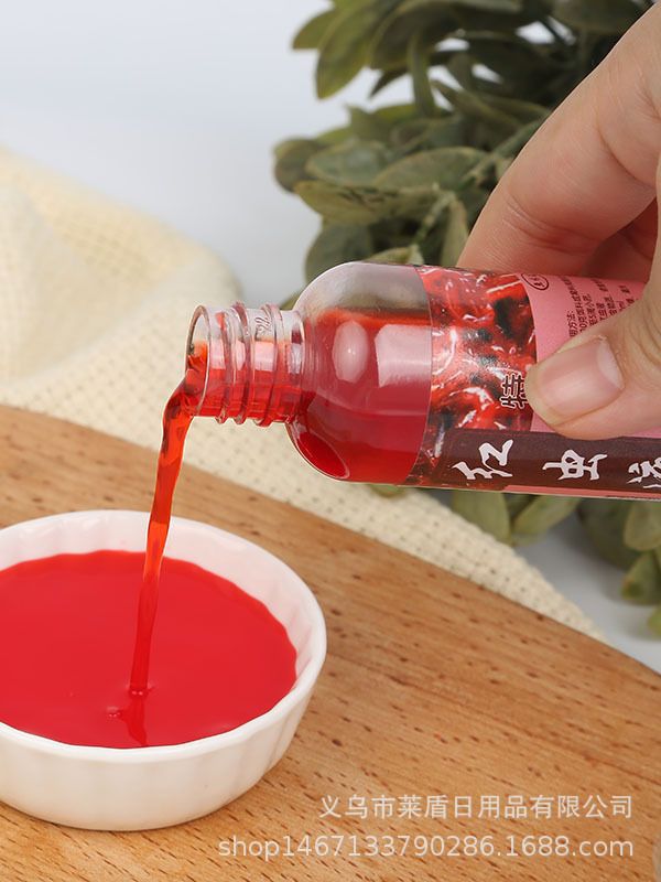 one bottle of red worm liquid
