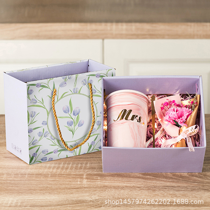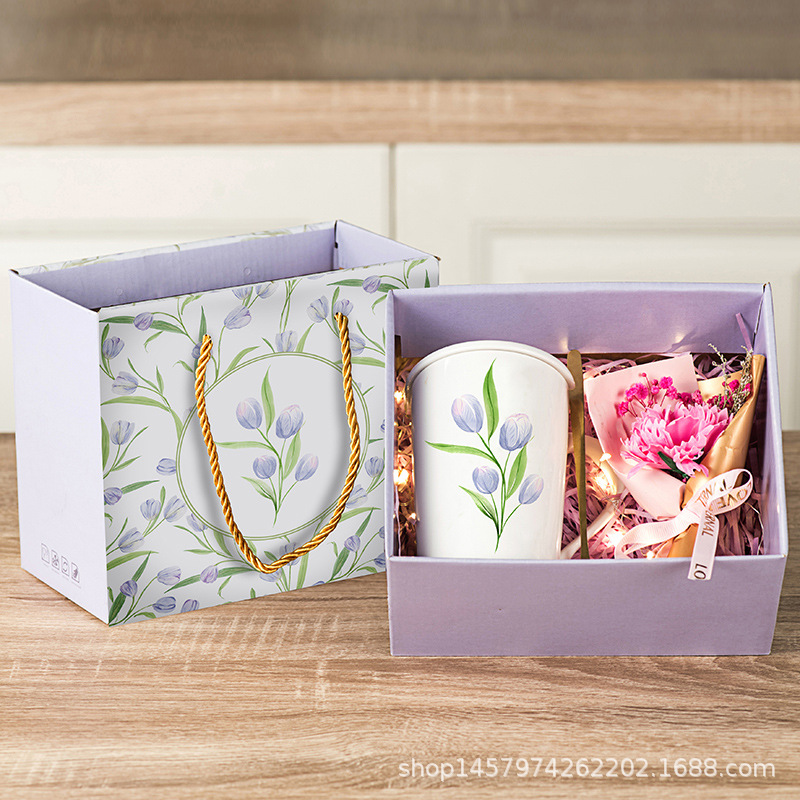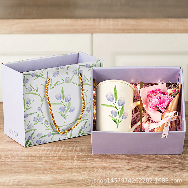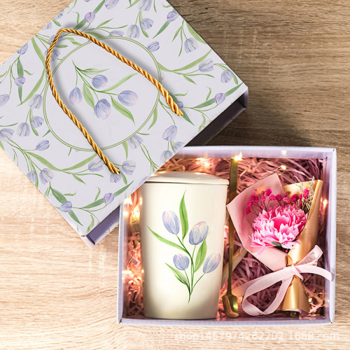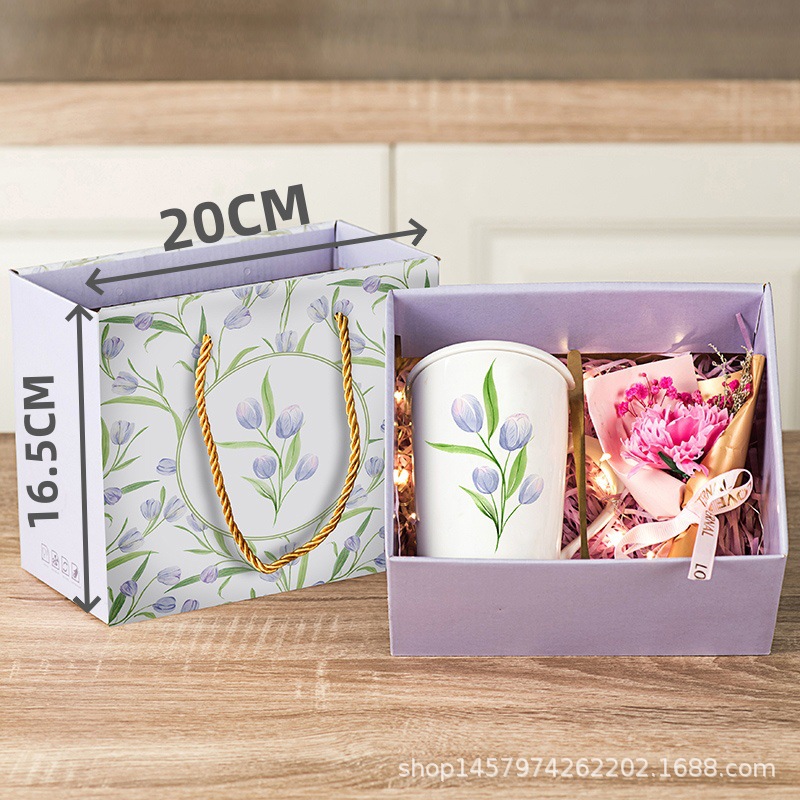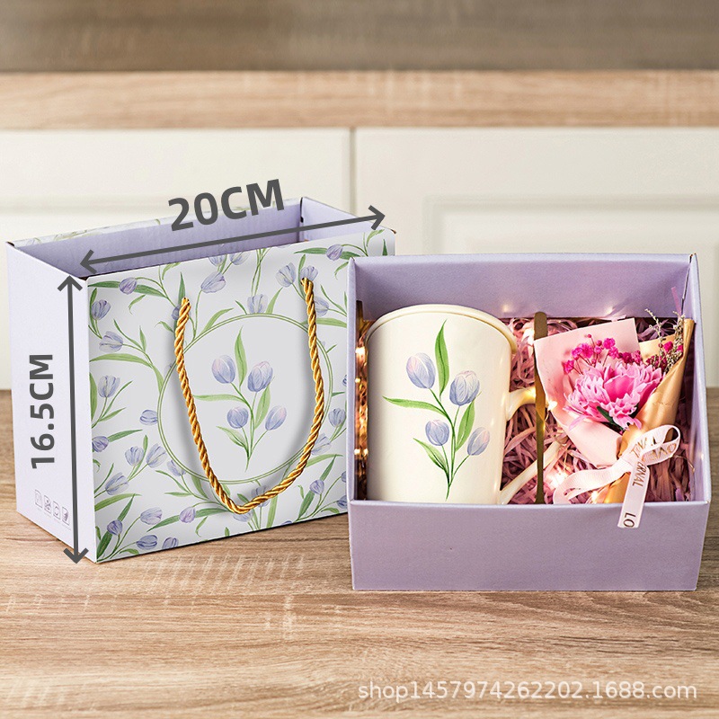 tulip gift box + tulip white cup + flowerplus led light set