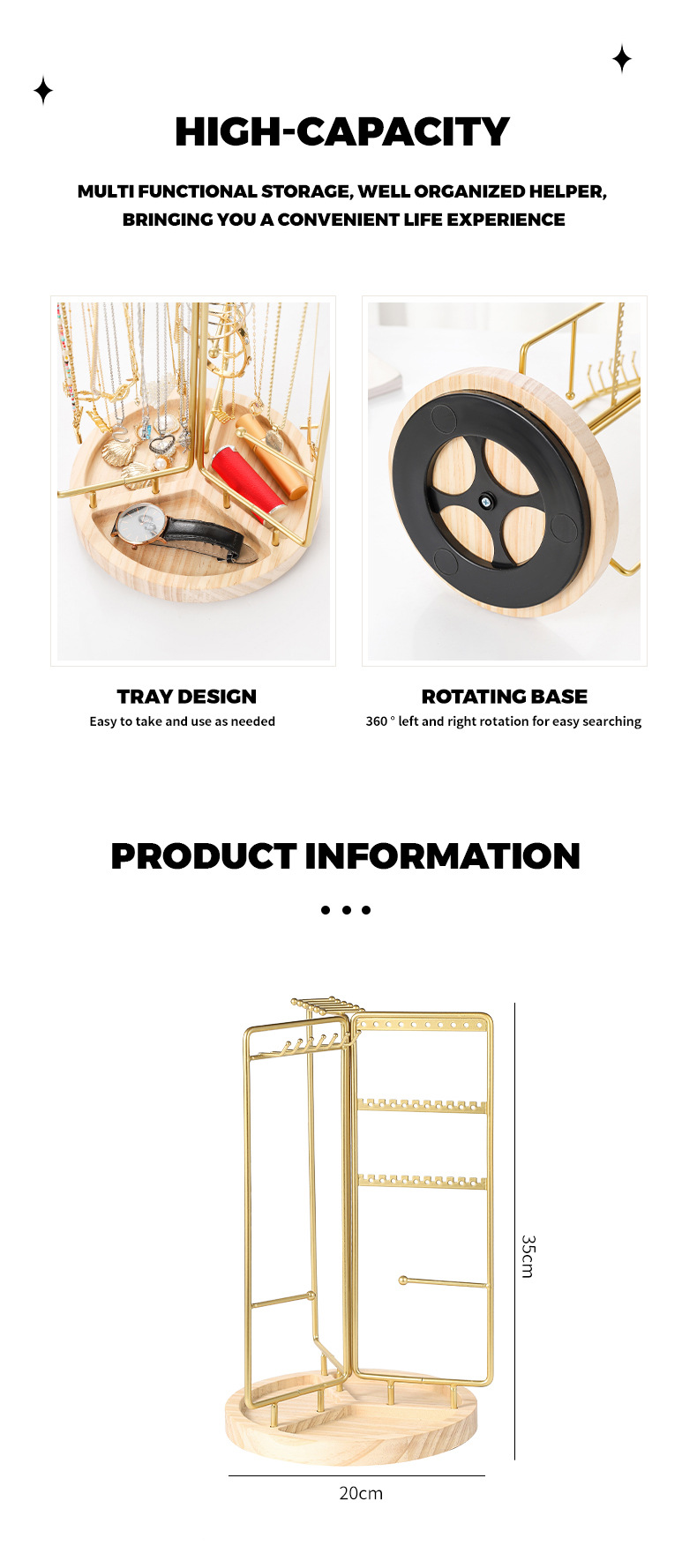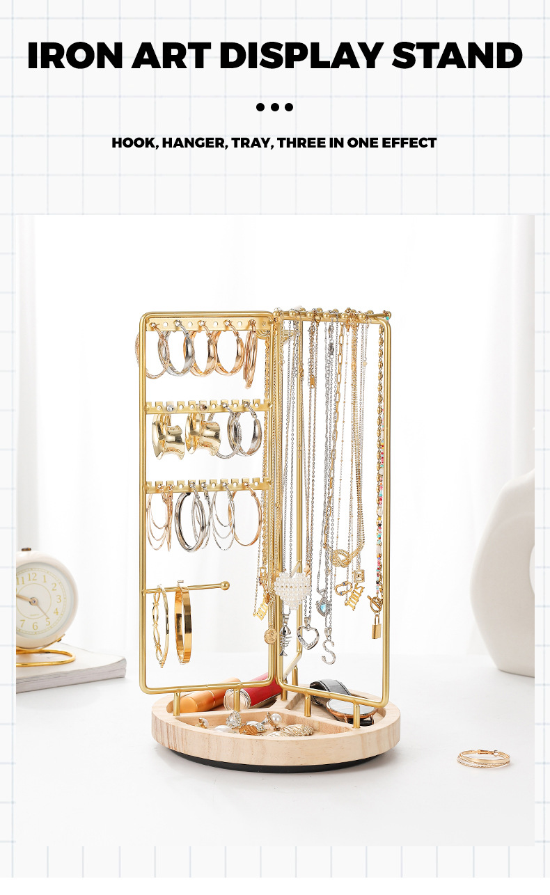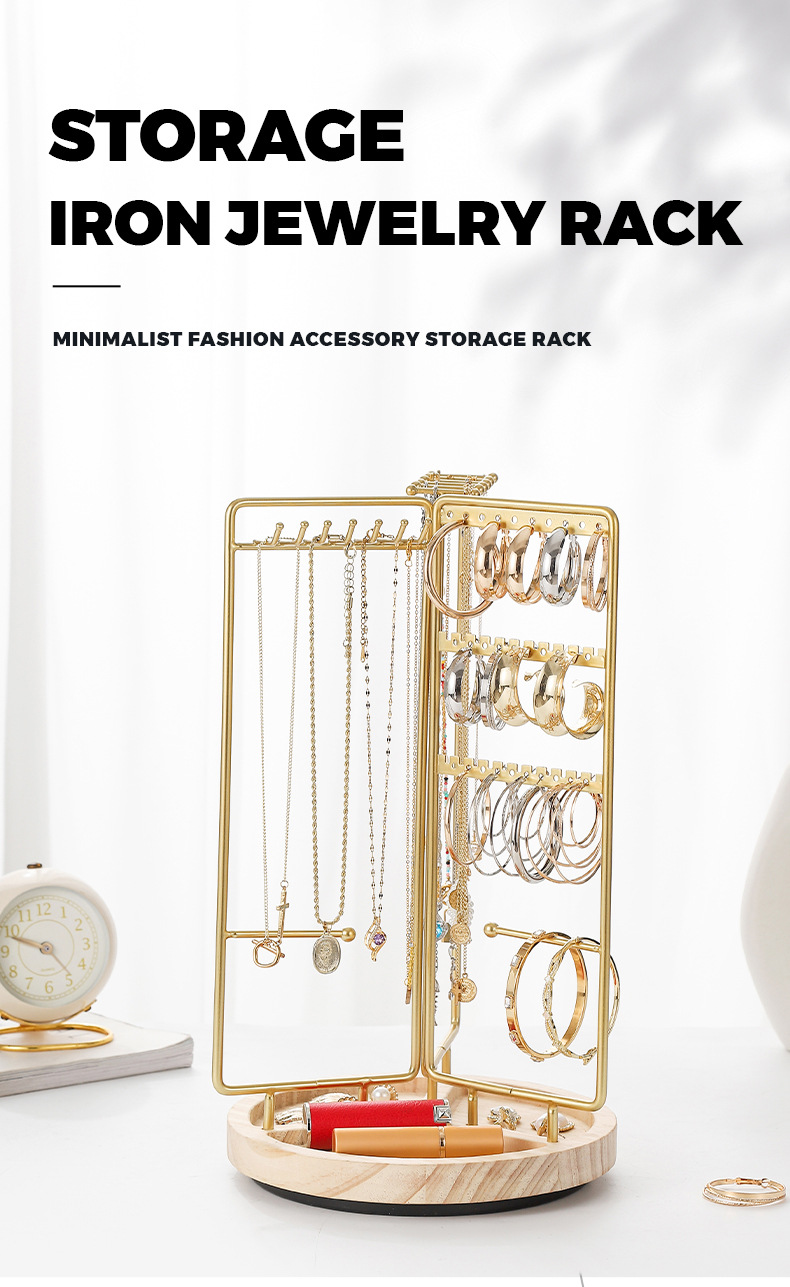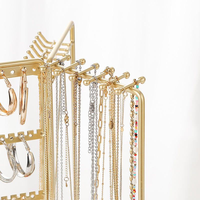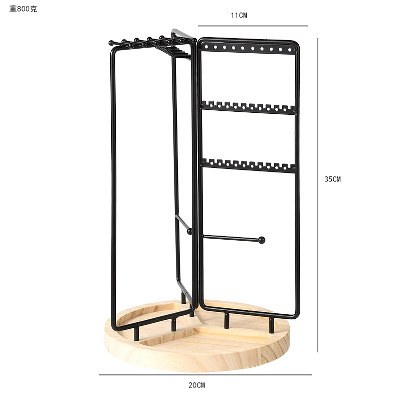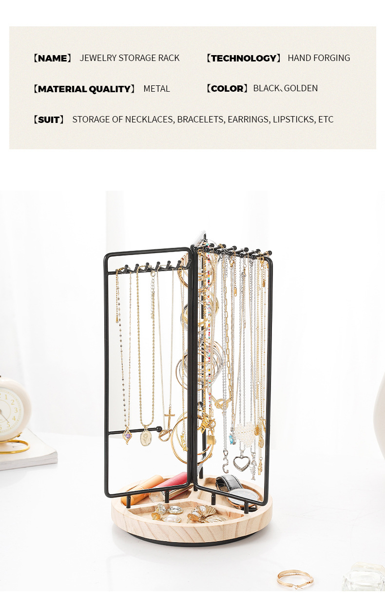 new cross-border metal jewelry rack rotatable necklace jewelry display shelf home simple solid wood jewelry storage rack