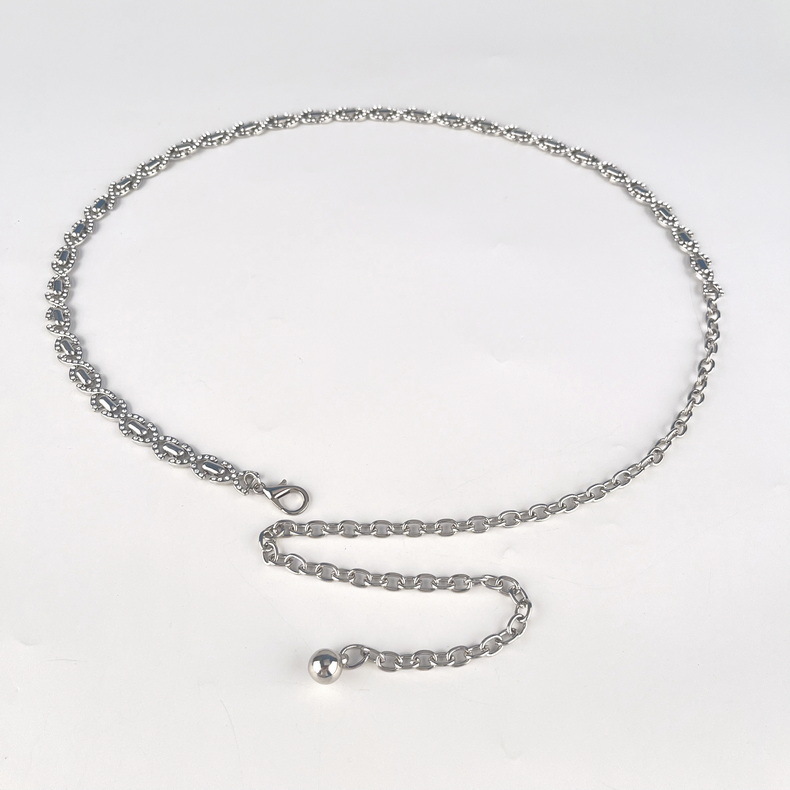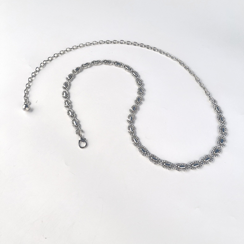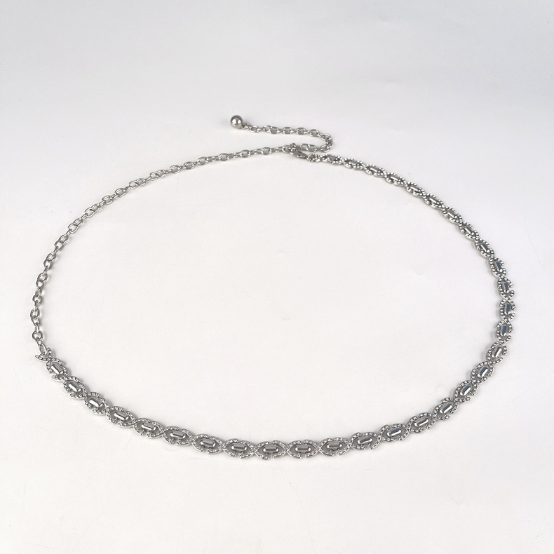 classic style diamond-embedded metal silver waist chain women's belt fashion women's dress skirt decoration cross-border delivery 中文版