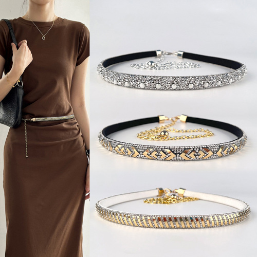 classic style rhinestone pearl waist chain women's belt fashion women's dress skirt decoration rhinestone light luxury minority 中文版