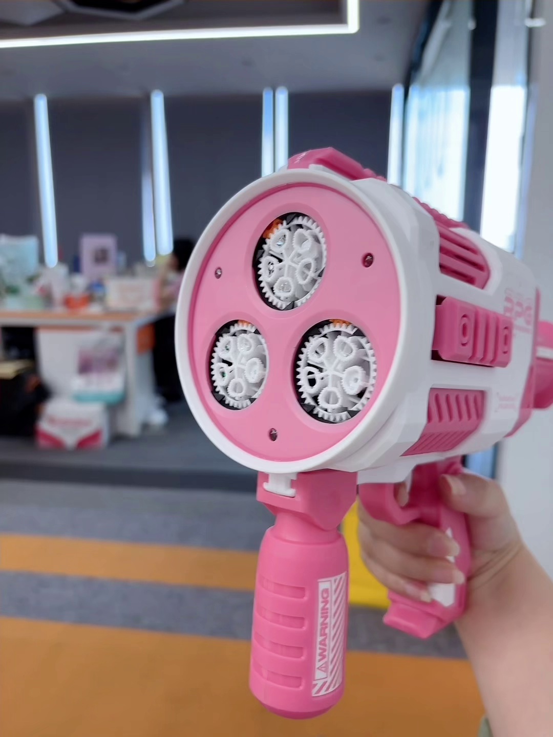 cross-border tiktok children's three-cylinder porous bubble machine internet celebrity gatling bubble gun electric automatic toys wholesale