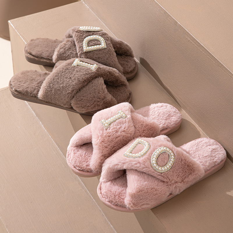 ido plush slippers women's indoor leisure cross fluffy slippers european and american hot cotton slippers in stock wholesale direct supply 中文版