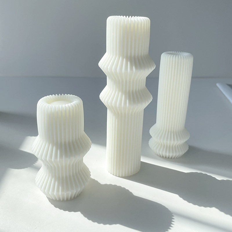 New Roman Column Candle Mould DIY Striped Cylinder Aromatherapy Gypsum Origami Striped Cylinder Decoration Silicone Mold