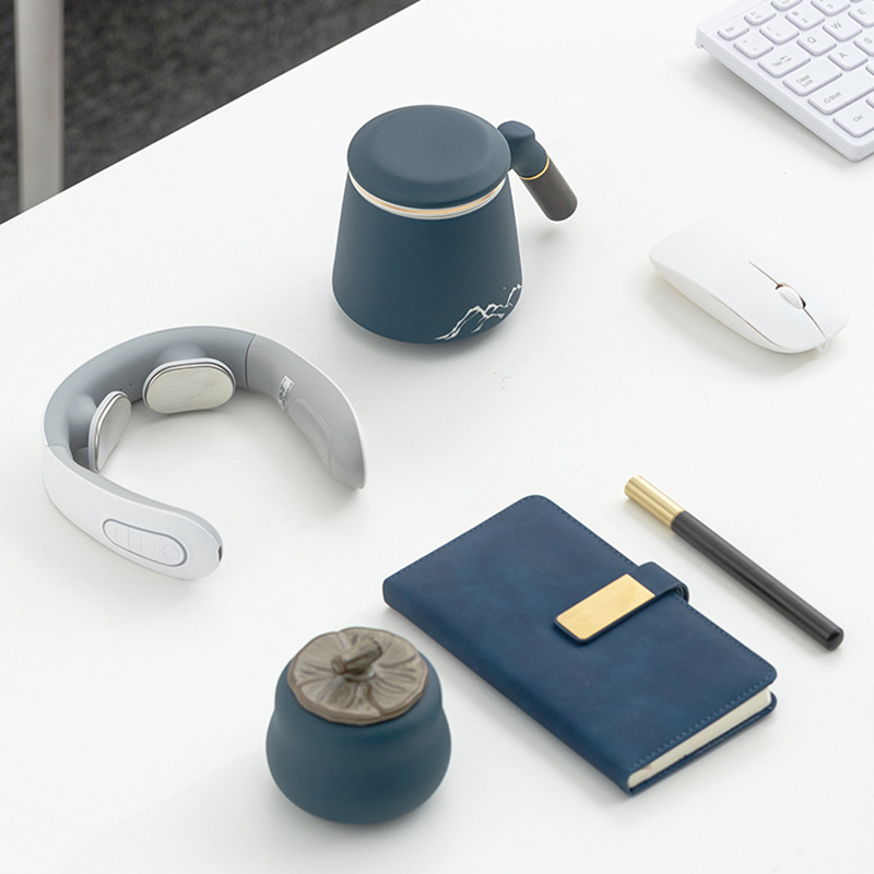 wooden handle office cup 5-piece set (blue)