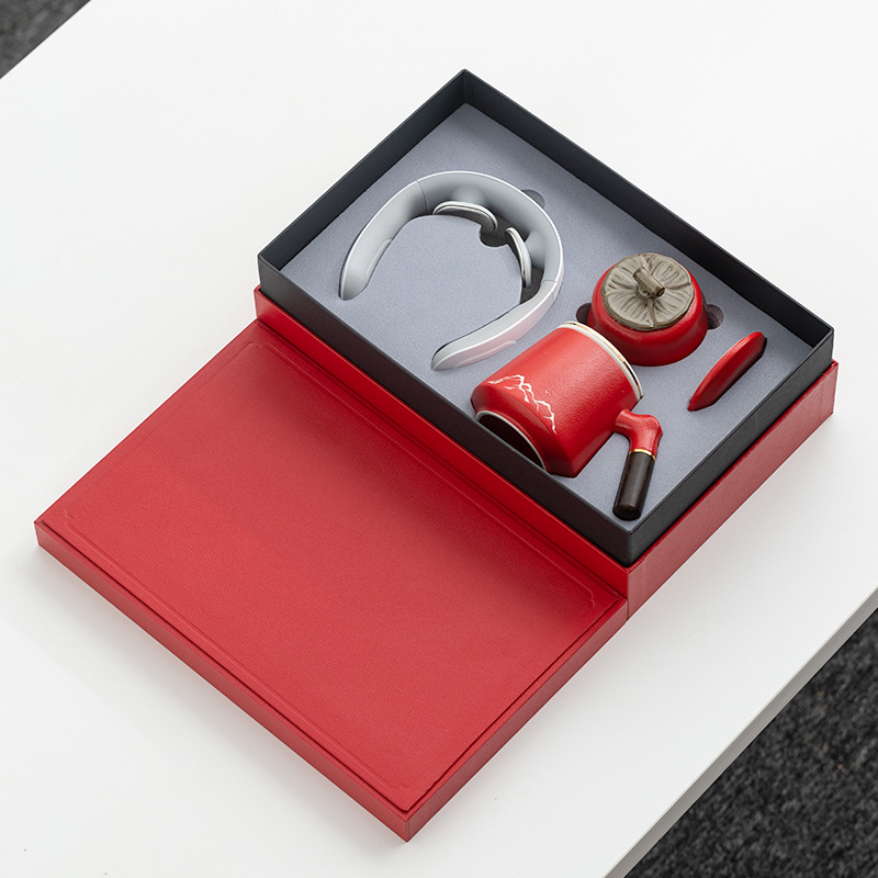 wooden handle office cup 4-piece set (red)