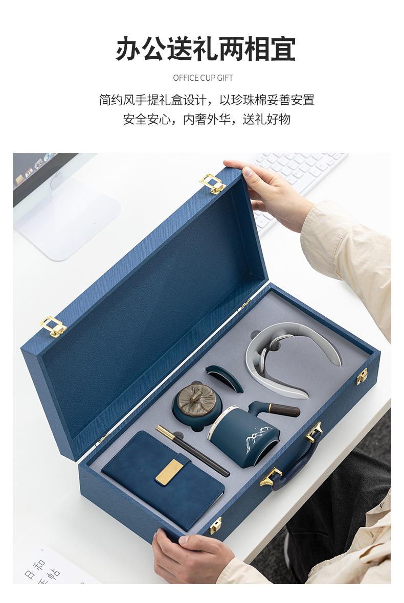 wooden handle office cup 4-piece set (blue)